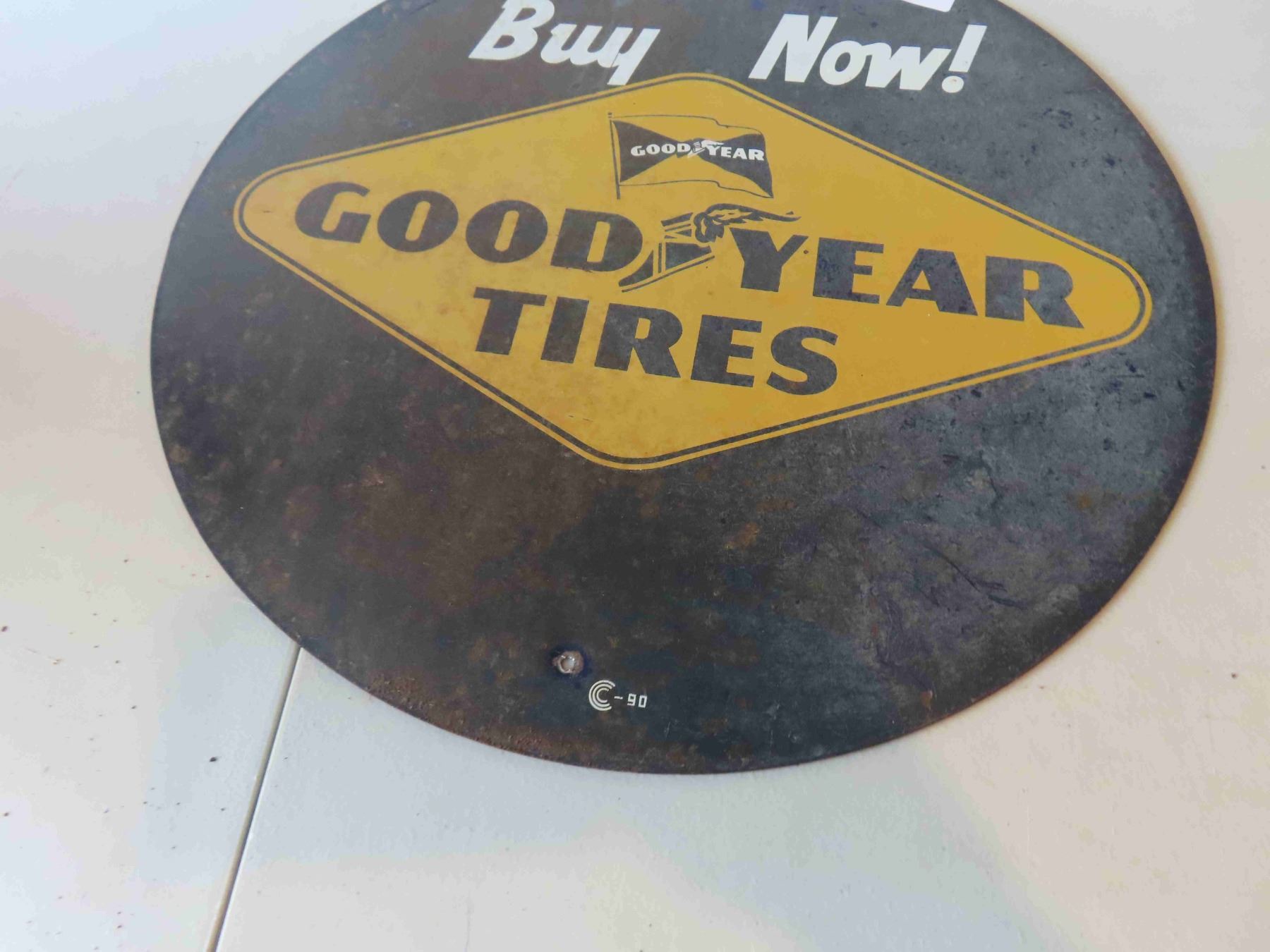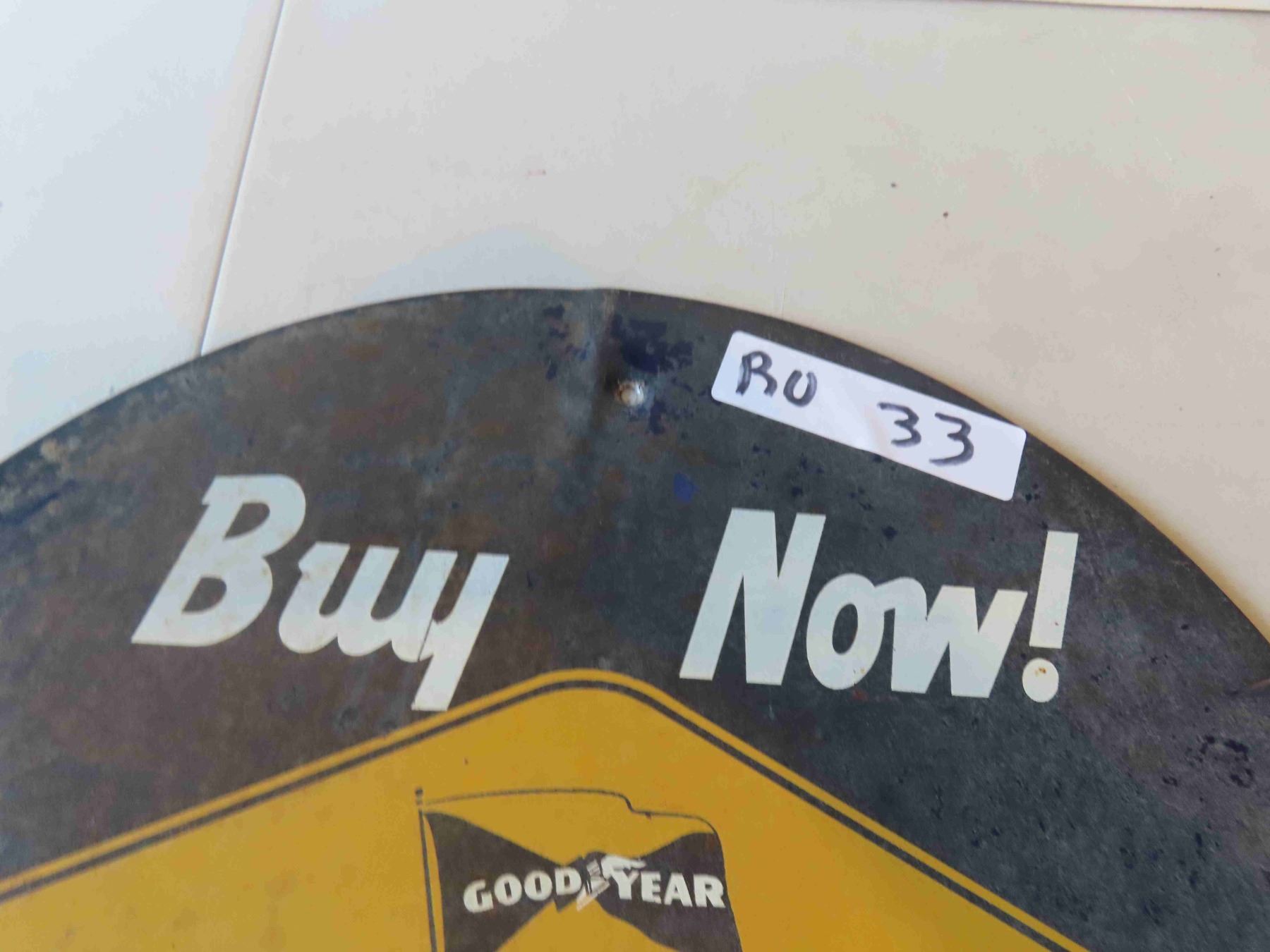 Goodyear Tires 'Buy Now' Round Metal Sign 17'' Across