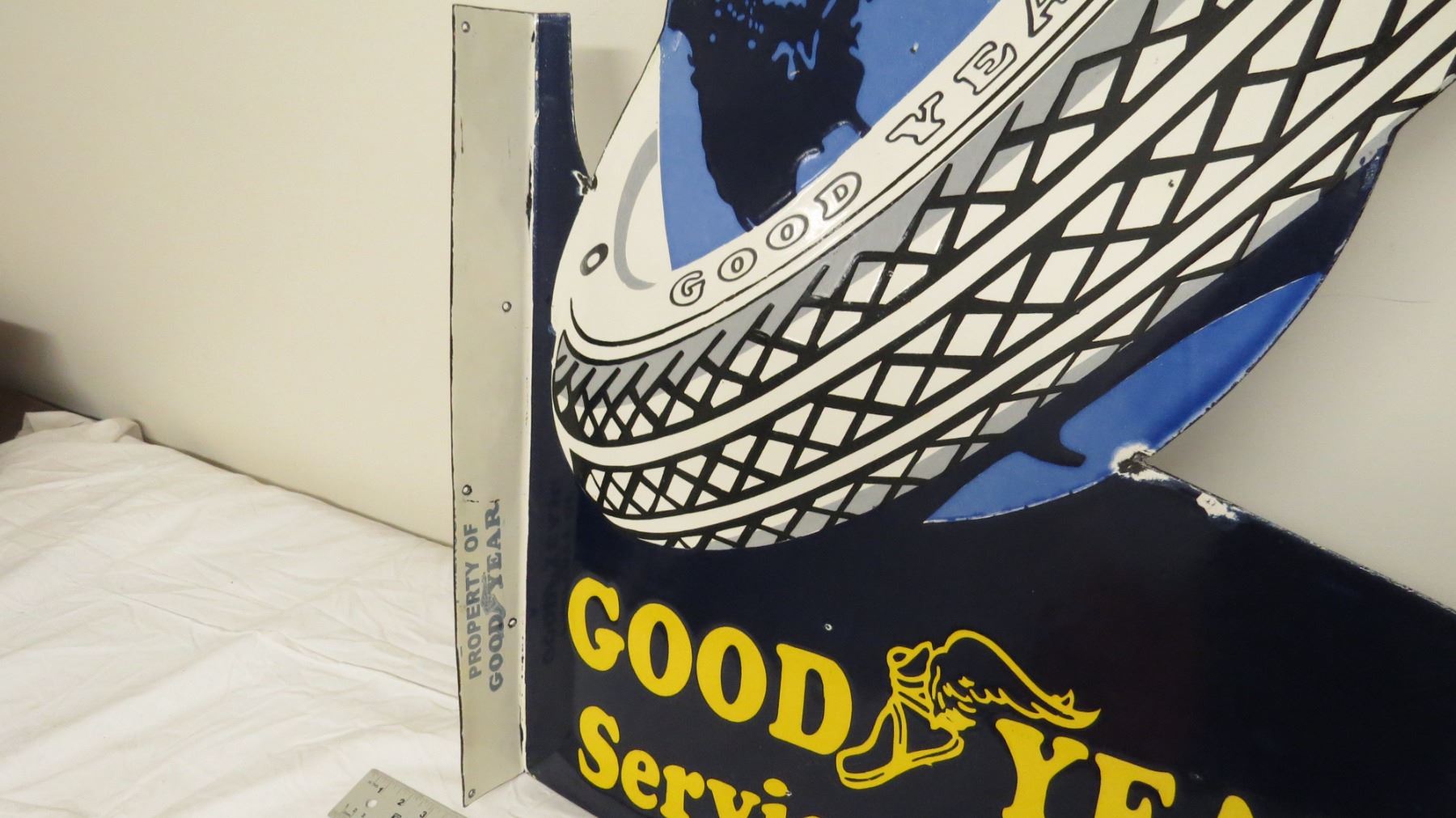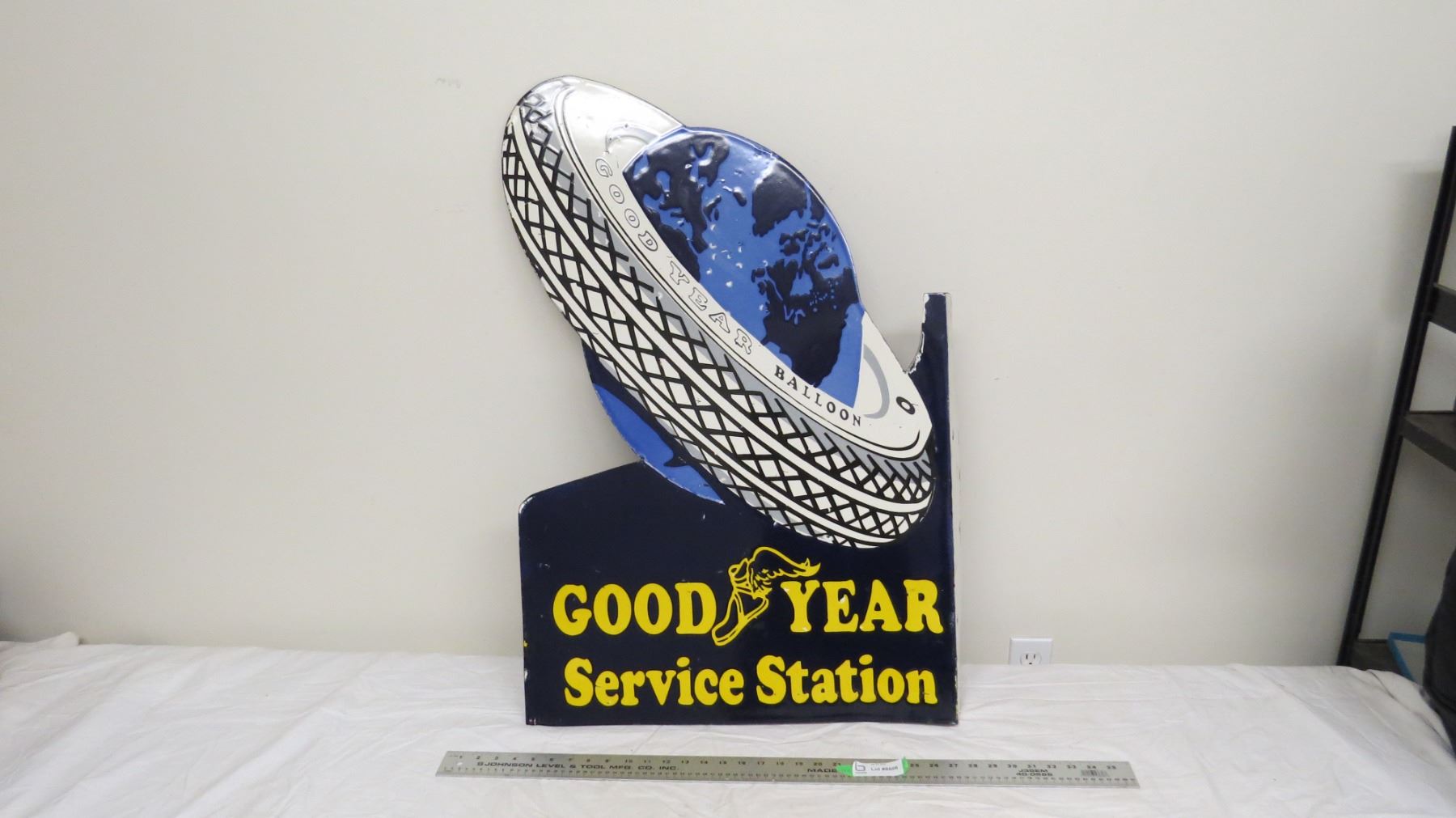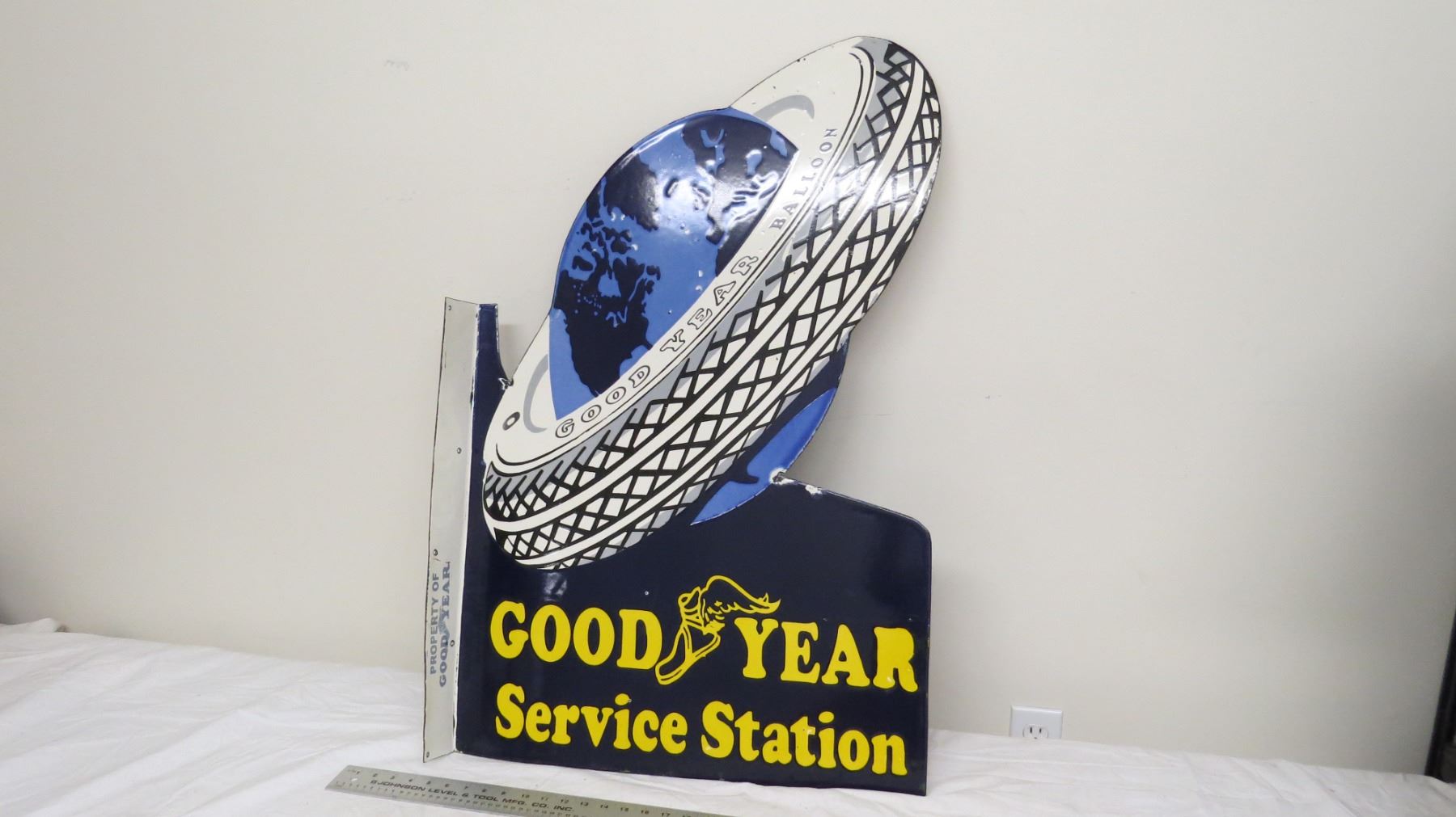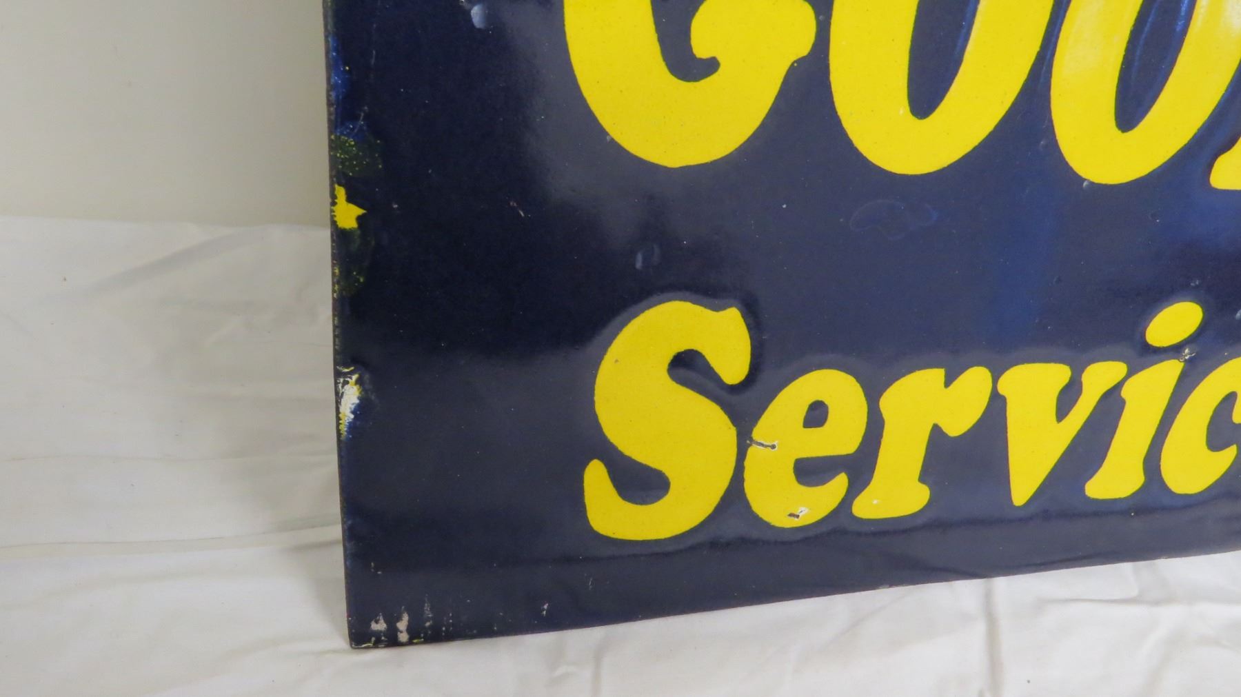 Goodyear service station porcelain flange sign - 24x36 - double sided