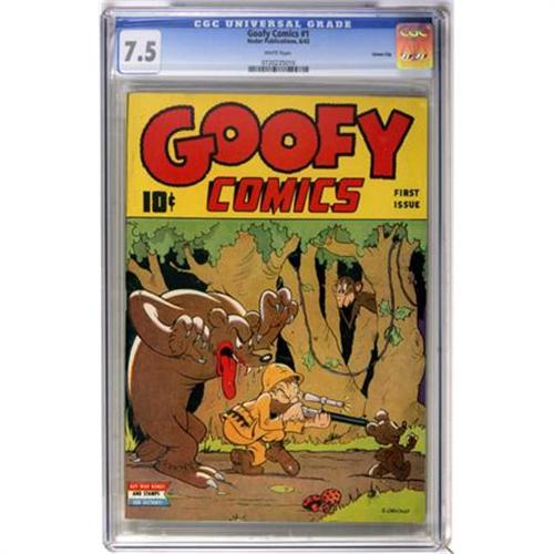 <B>Goofy Comics #1 Carson City pedigree (Nedor Publications, 1943) CGC VF- 7.5 White pages.</B></I> Funny animal stories. Joe Oriolo cover and art. Overstreet 2007 VF 8.0 value = $163. CGC census 6/07: 1 in 7.5, none higher.<BR><BR><b>Shipping:</b> Comics - Slabbed (certified) (<a target="_blank" href="http://www.heritageauctions.com/common/shipping.php">view shipping information</a>)