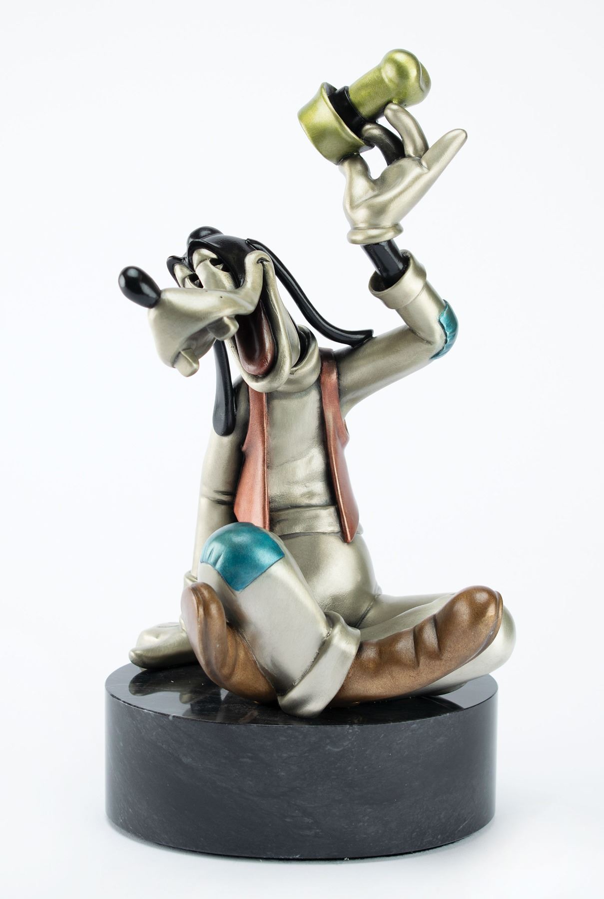 Limited edition pewter figurine by Hudson Creek entitled 'Just Goofy,' numbered 42 (of an edition of 300), featuring a 10˝ tall painted pewter Goofy statue on a black marble base. Overall dimensions are 6˝ x 11.75˝ x 6˝. Includes its original box. In fine condition.
