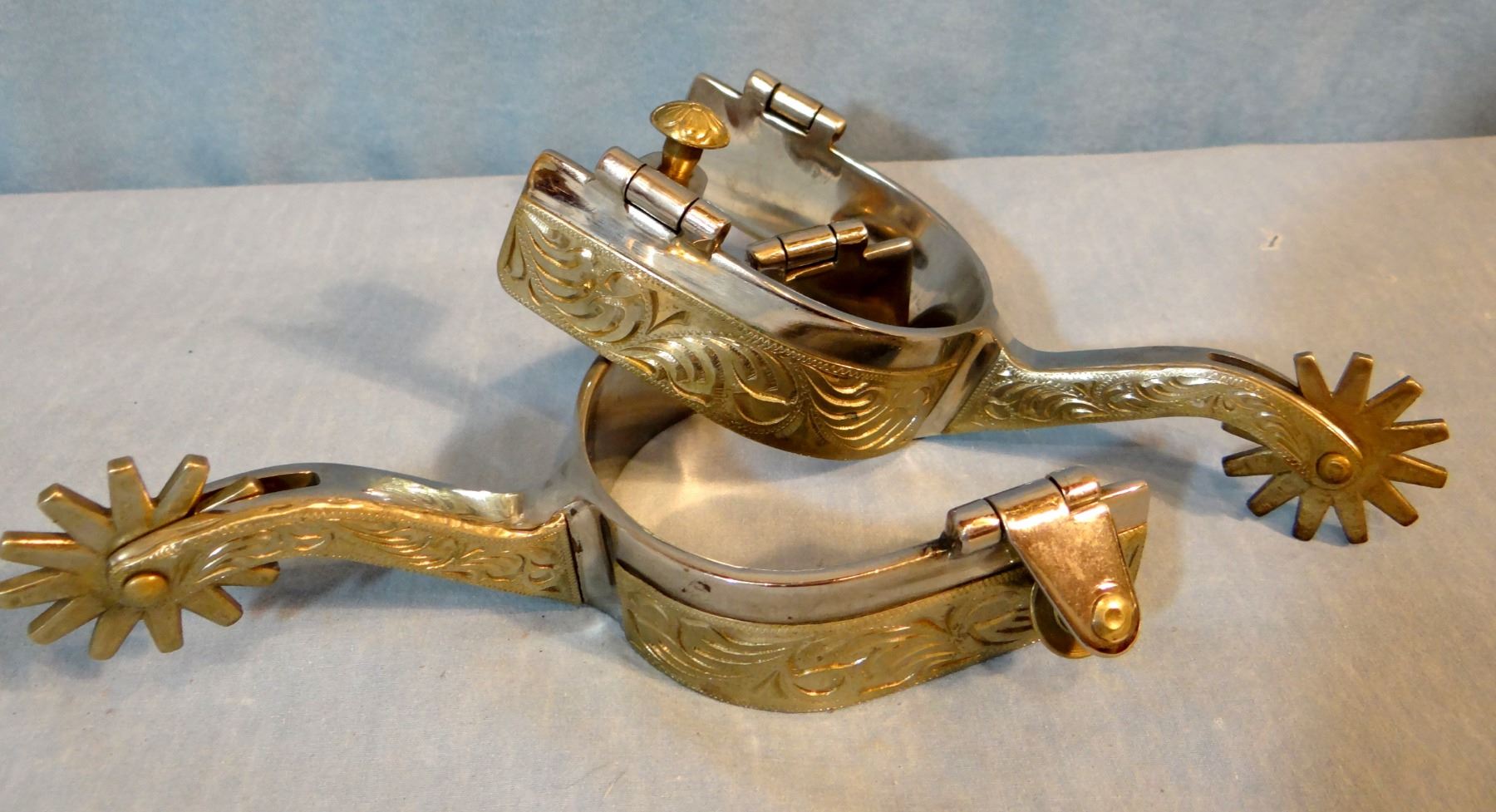 Goose-neck silver mtd. spurs, like new, unmarked