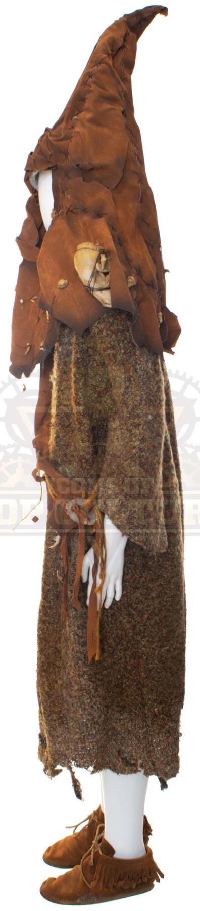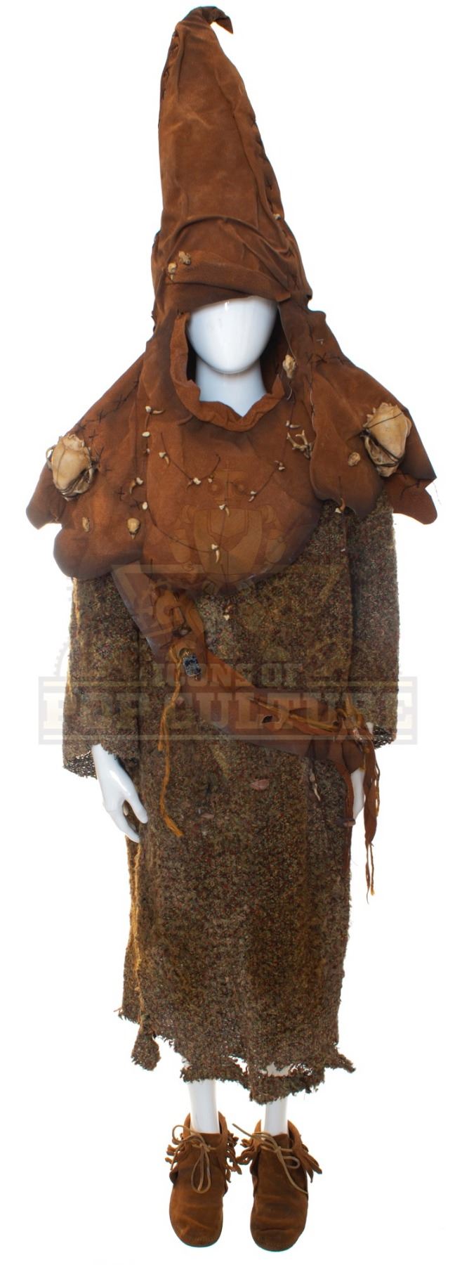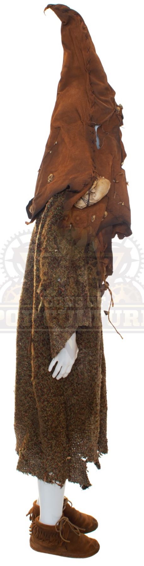 This Goblin costume was acquired by the production for use by Joe Marri as “Goblin”. The costume consists of a multi-color tunic, brown faux leather hat with plastic bones detailing, faux leather belt and a pair of brown shoes.