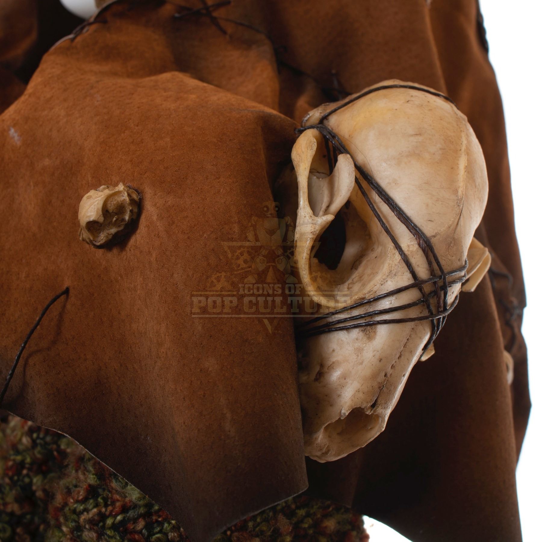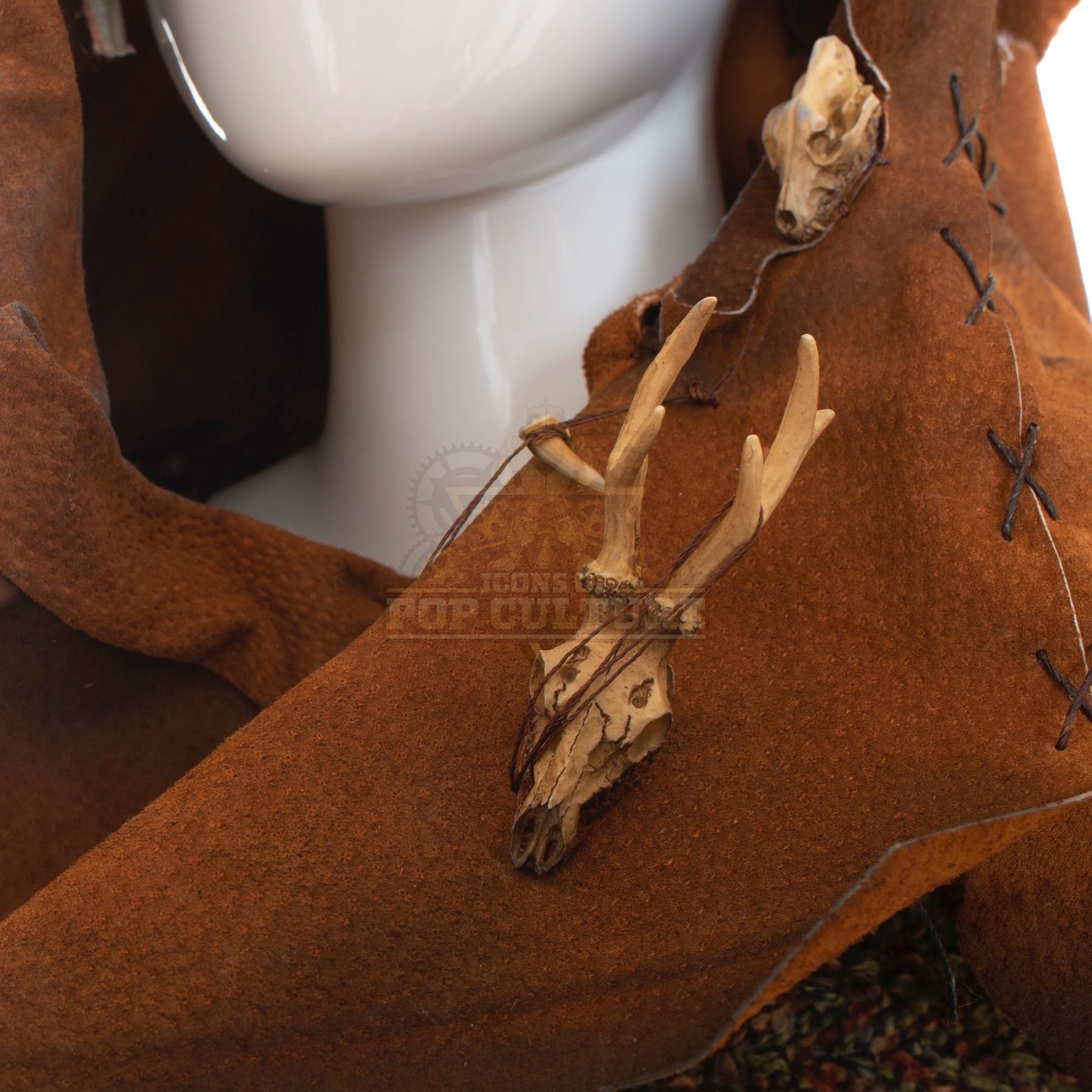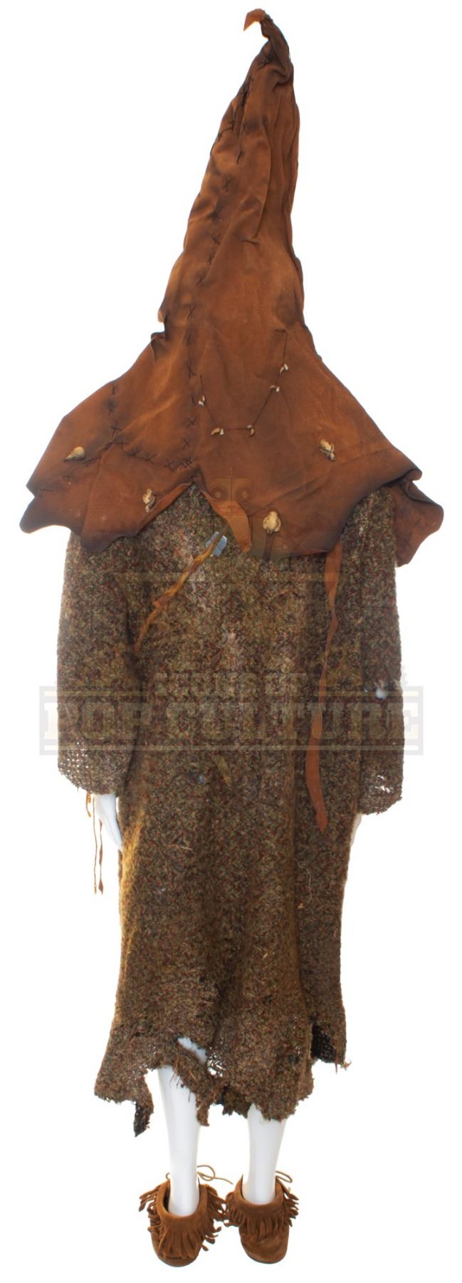 This Goblin costume was acquired by the production for use by Joe Marri as “Goblin”. The costume consists of a multi-color tunic, brown faux leather hat with plastic bones detailing, faux leather belt and a pair of brown shoes.