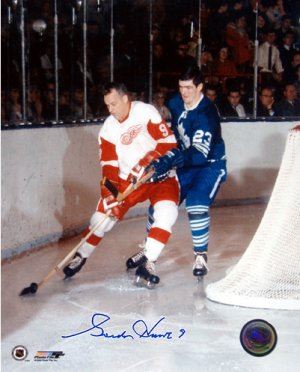 Being most famous for his scoring prowess, physical strength, and the longevity of his career, Howe is the only player to have competed in the NHL in five (1940s through 1980s) different decades. A four-time Stanley Cup champion with the Red Wings, he won six Hart Trophies as the league's most valuable player and six Art Ross Trophies as the leading scorer. He was the recipient of the first NHL Lifetime Achievement Award in 2008. Gordie Howe has hand autographed this Detroit Redwings 16x20 photo vs Toronto Maple Leafs. LOJO Hologram and Certificate of Authenticity from Athlon Sports.