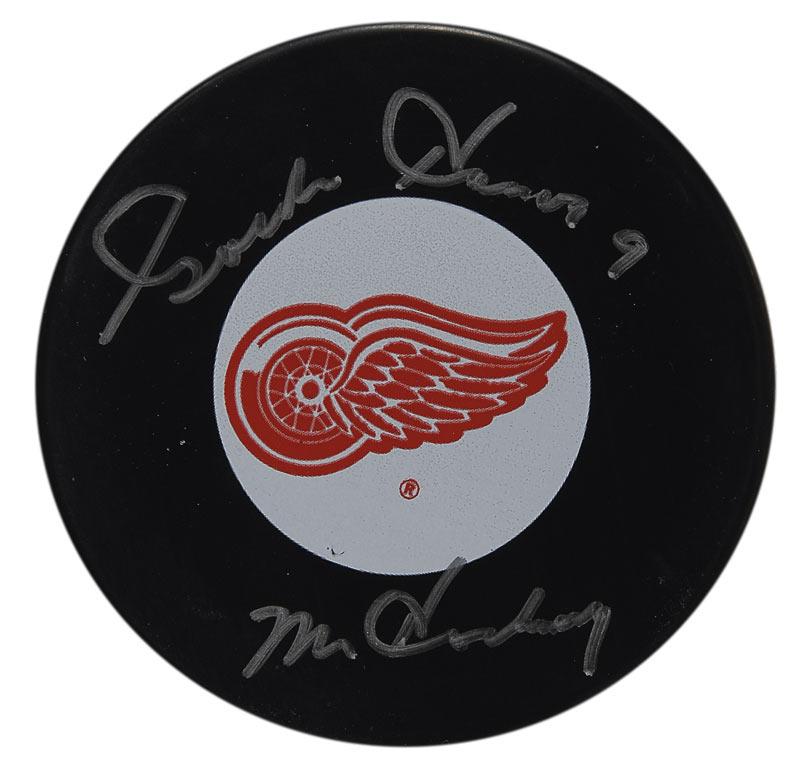 Official NHL Detroit Red Wings hockey puck signed in silver felt tip on the logo side, “Gordie Howe 9 Mr. Hockey.” In very fine condition. Pre-certified Steve Grad/PSA/DNA and RRAuction COA.