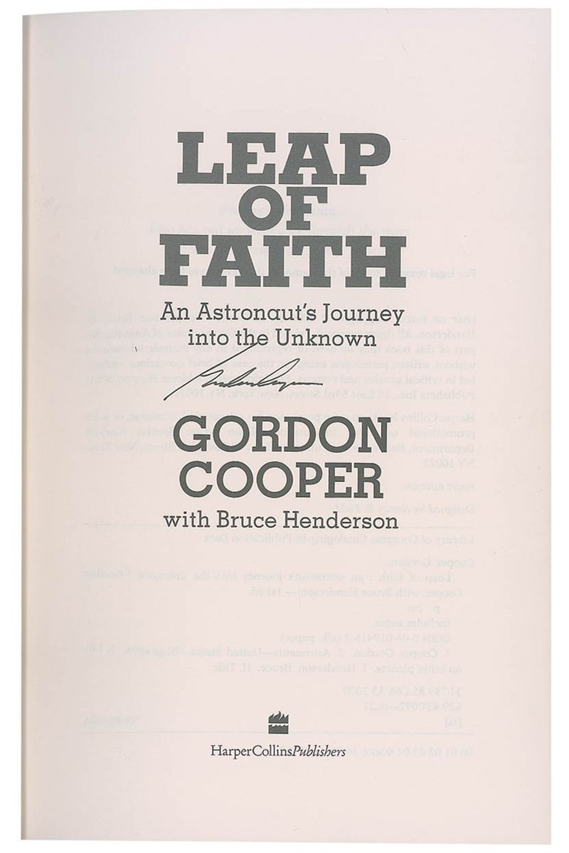 Signed book: Leap of Faith. First edition, first printing. NY: HarperCollins, 2000. Hardcover with dustjacket, 6.5 x 9.5, 279 pages. Signed on the title page in black ink by Cooper. In fine condition. Accompanied by a photo taken at time of signing.