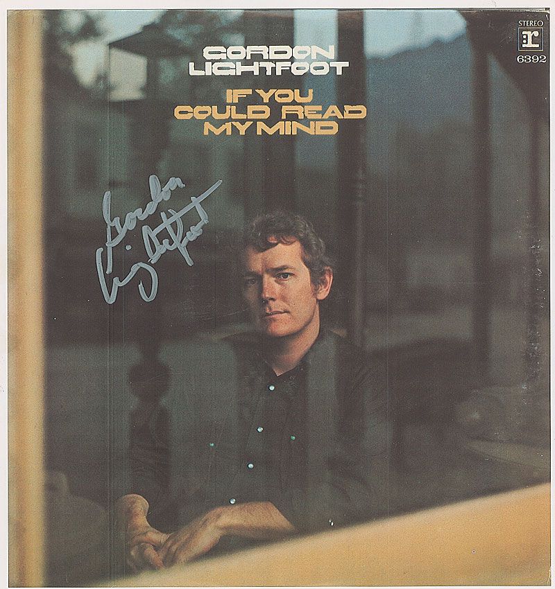 Color 10.75 x 11.5 laserprint cardstock photo of Lightfoot’s If You Could Read My Mind album, signed in silver ink. In fine condition, with a couple bends and edge dings.