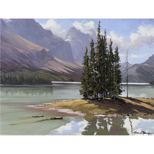 Canadian [20th century] MALIGNE LAKE oil on canvas 12 x 16 in. (30.5 x 40.6 cm) signed & titled Provenance: Gainsborough Galleries, Calgary