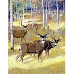 Gordon Snidow (b.1936) (CA). Gouache. "Deer & Landscape." With 1963 Fall edition of the Outdoorsman. 17" x 13.25". Estimate $3500-$4,000.