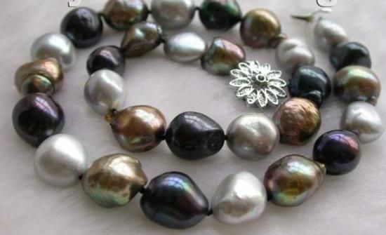 Gorgeous 12 mm Multicolor Natural Pearl Necklace, measures approx 18 inches, beautiful floral clasp mwf2198