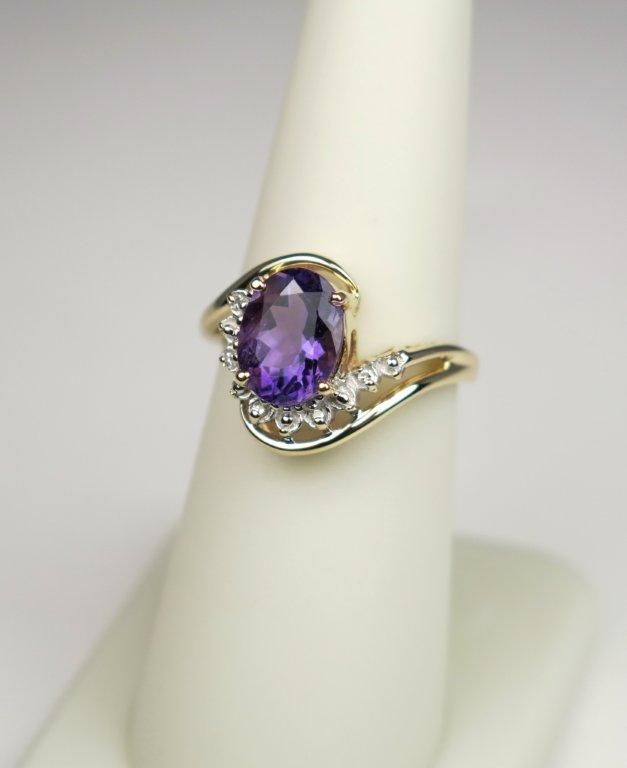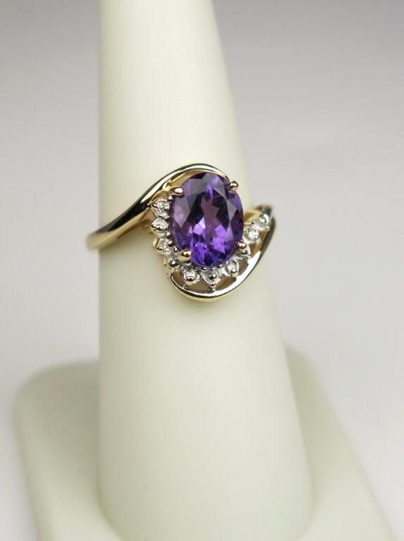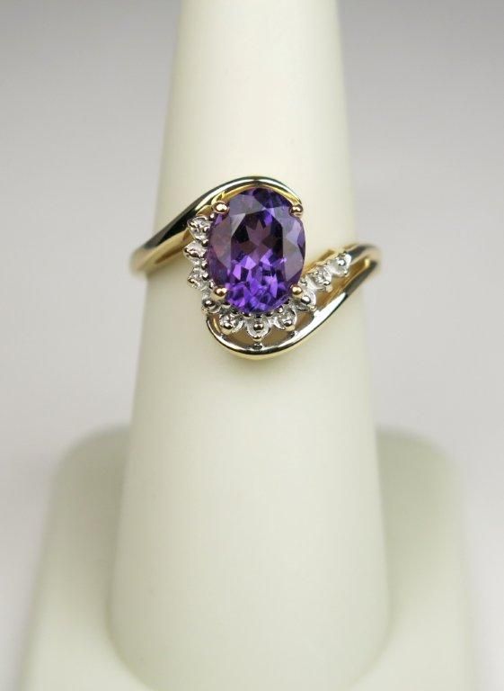 Set with an oval purple amethyst weighing approx 2.00 carats and side diamonds. Retail $995.