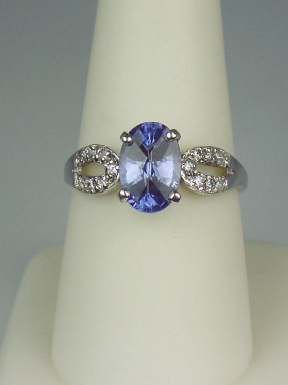 Gorgeous 14 karat white gold ladies ring fine set with a center Ceylon type color sapphire weighing 2.14 carats and pave set with 10 round diamonds weighing approx. 0.15 carats of F-G colors and VS clarity.Retail $2,950.00 Estimate $800-$1,200