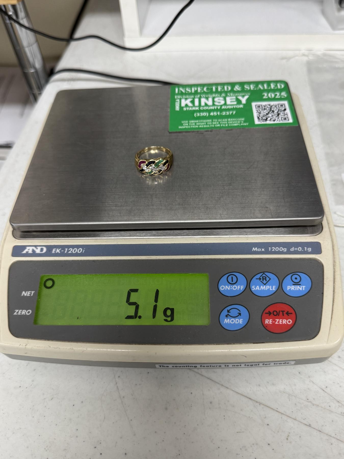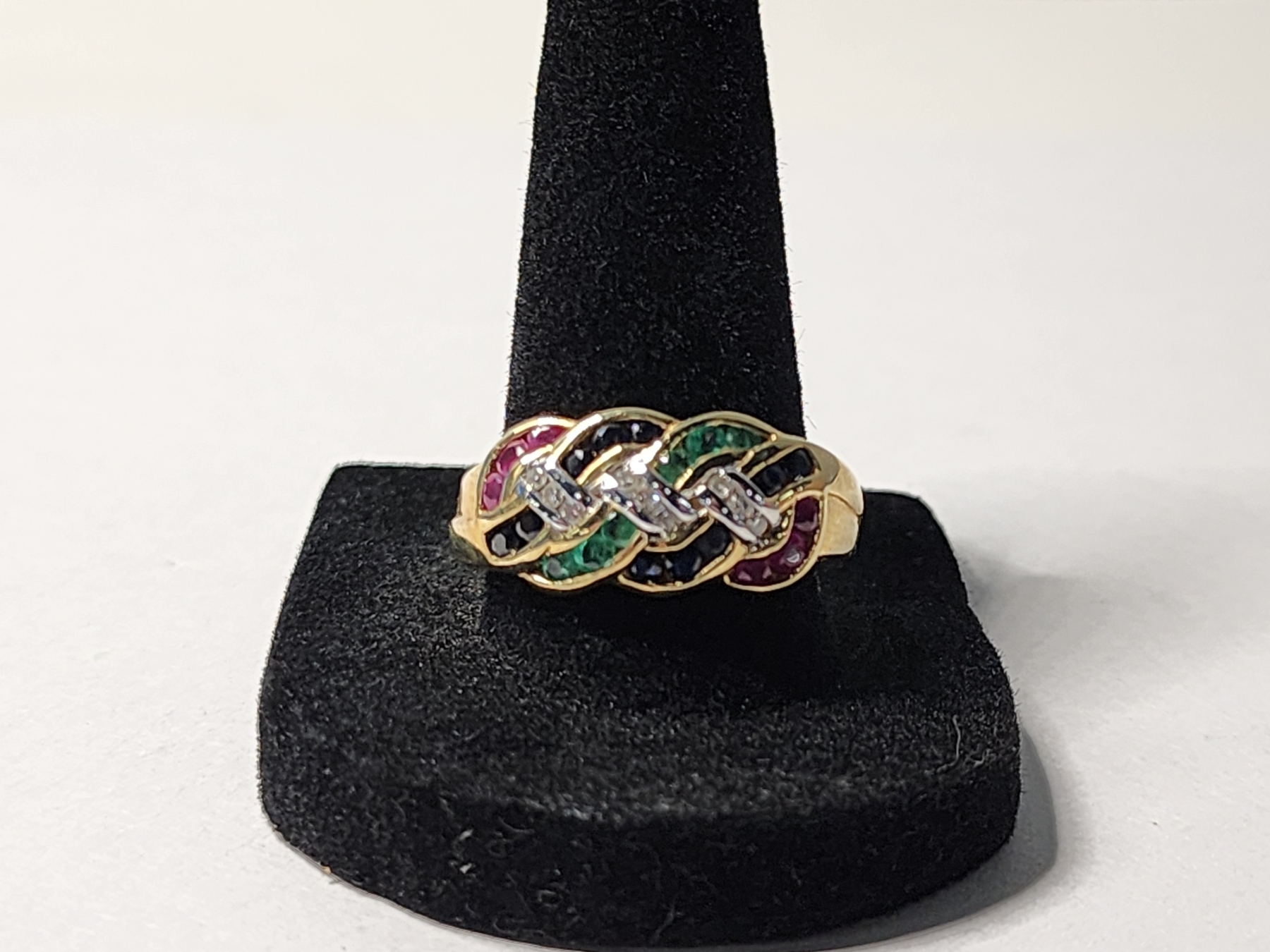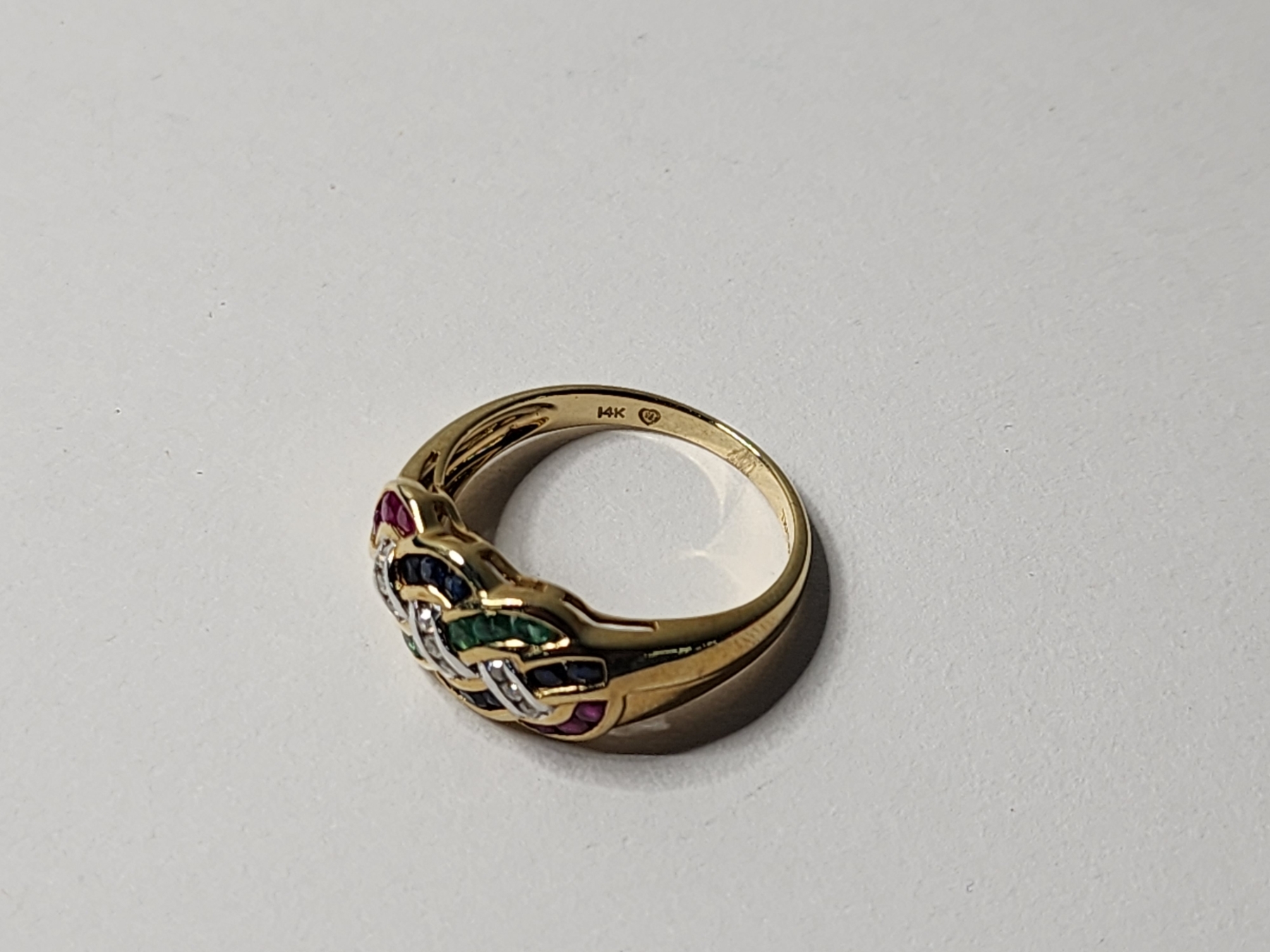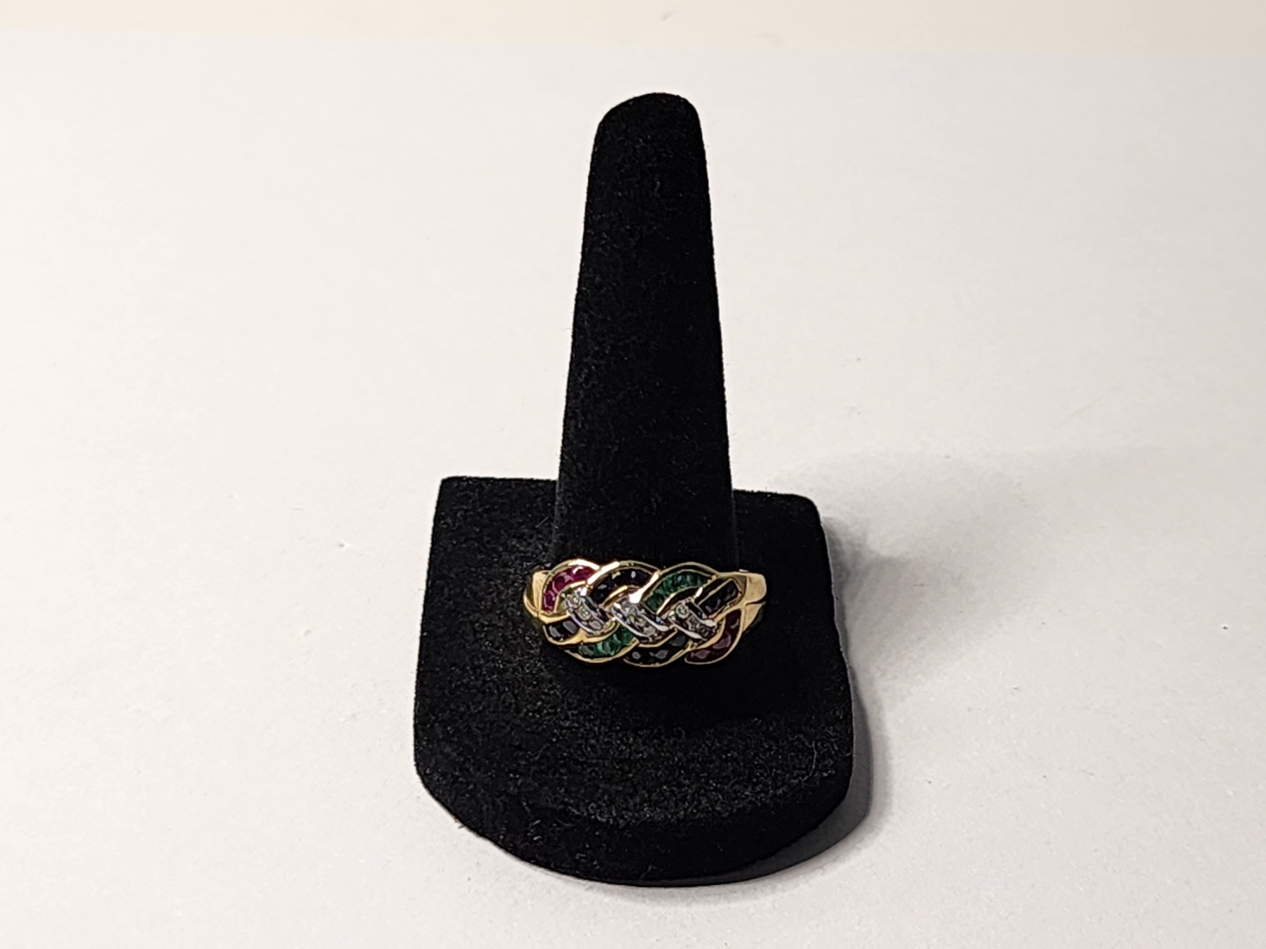 Gorgeous 14K Gold Ring with Diamonds and Colorful Stones Size 10 TW: 5.1g