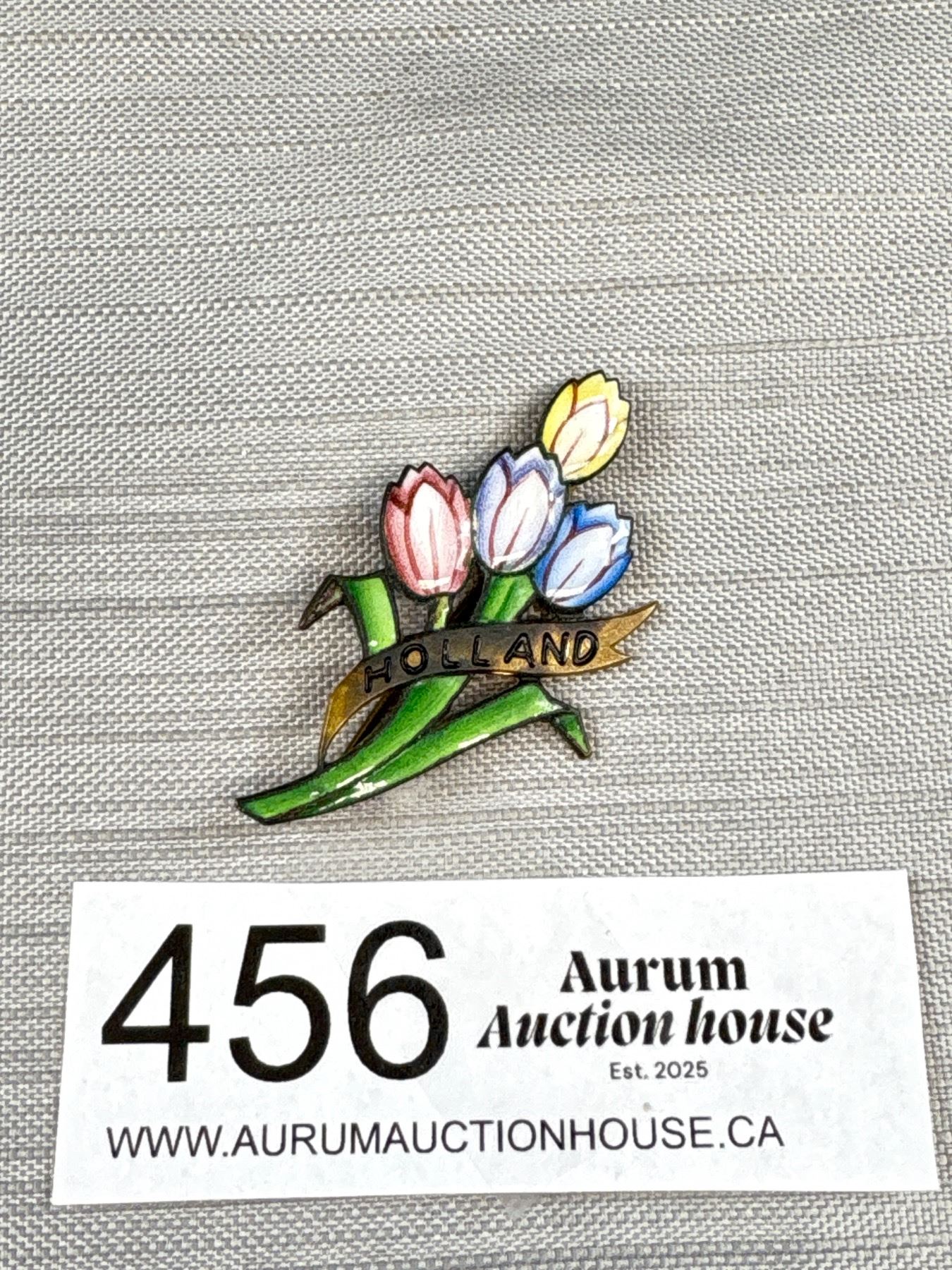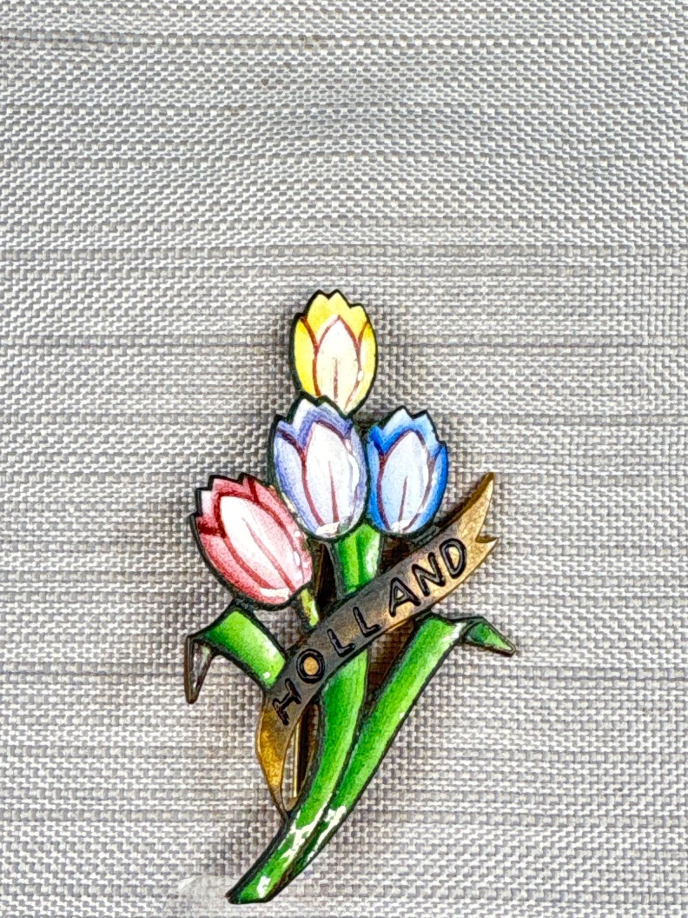 Gorgeous Antique C.1920s Fully Enamelled Tulip Flower Brooch Excellent!