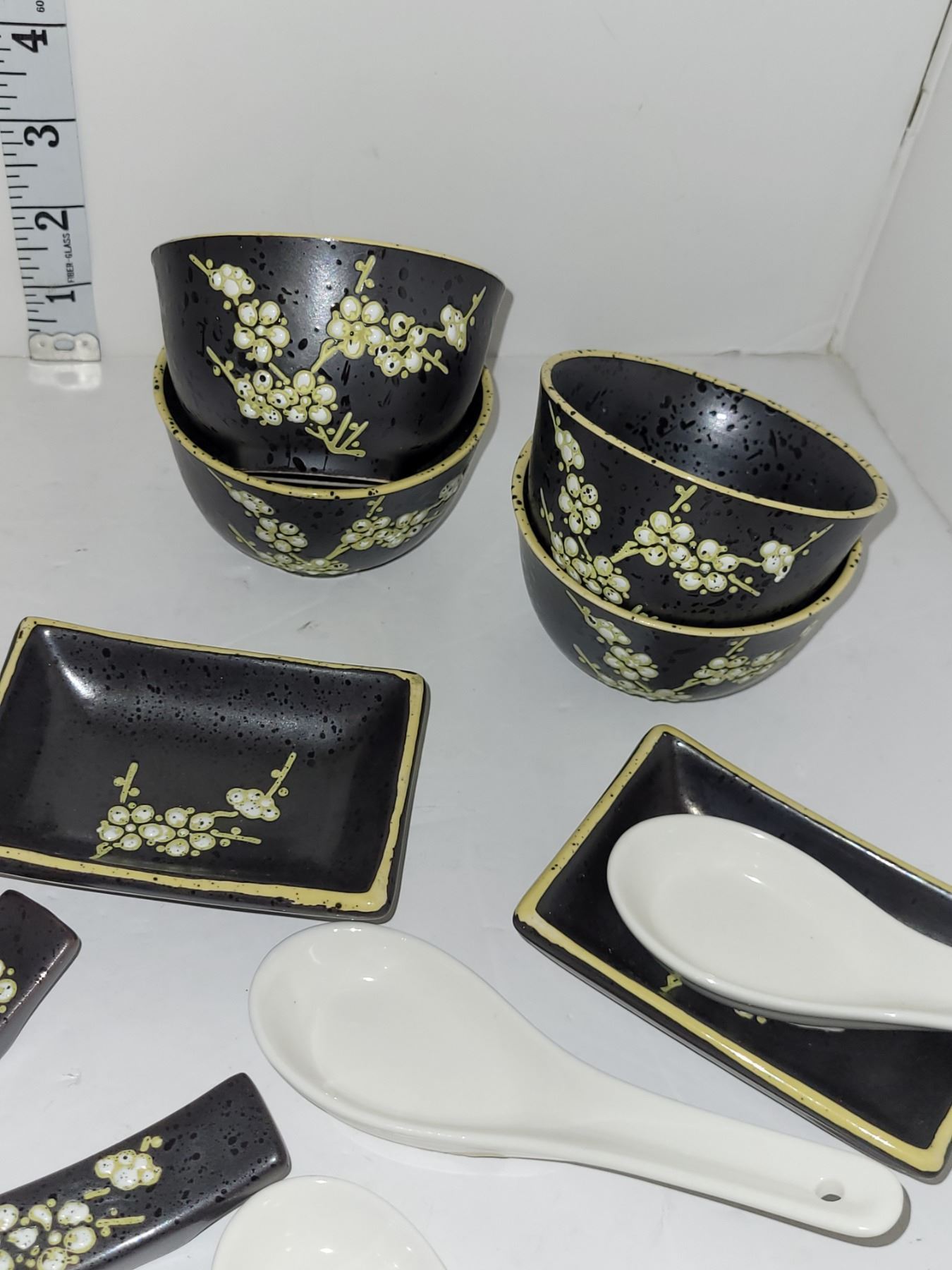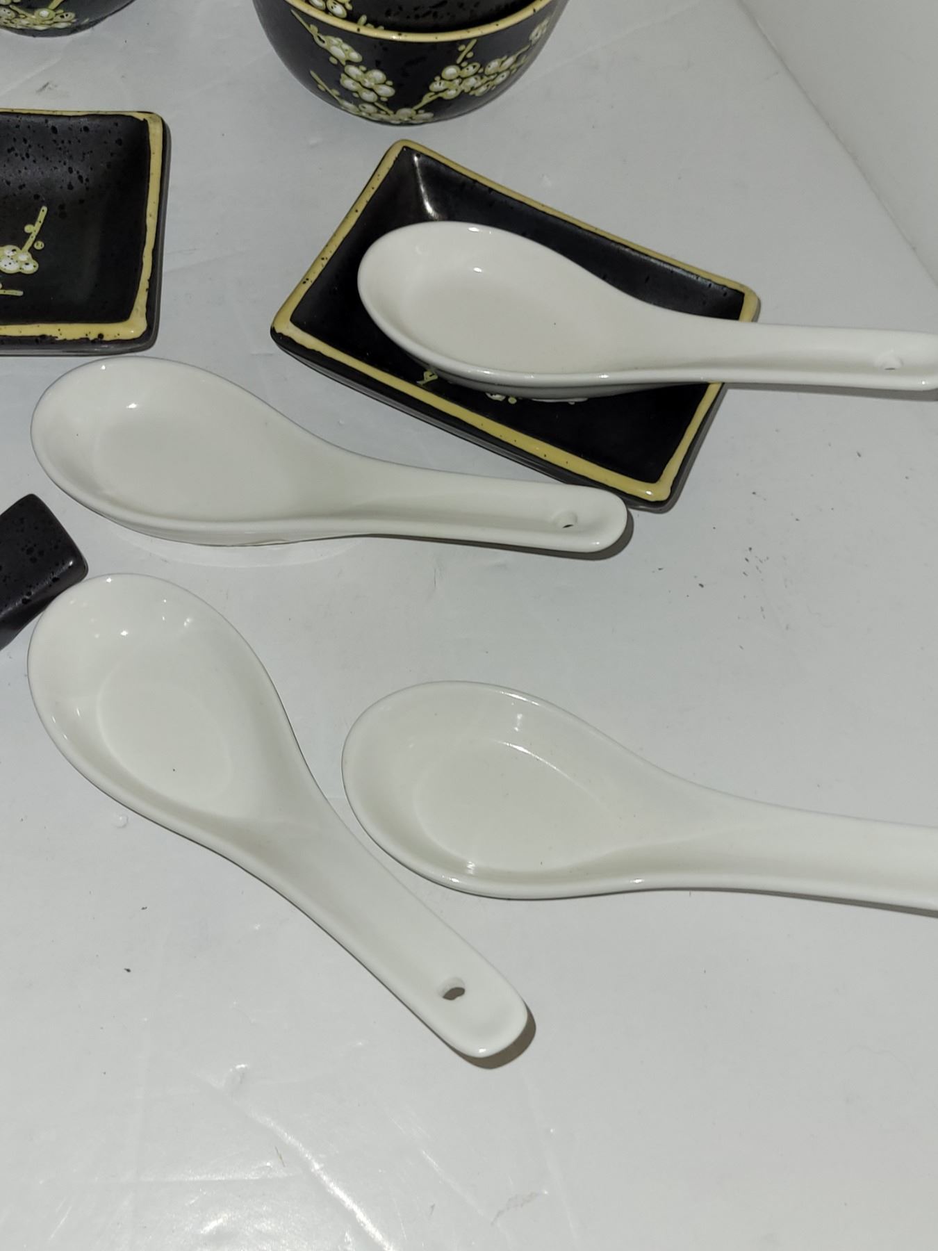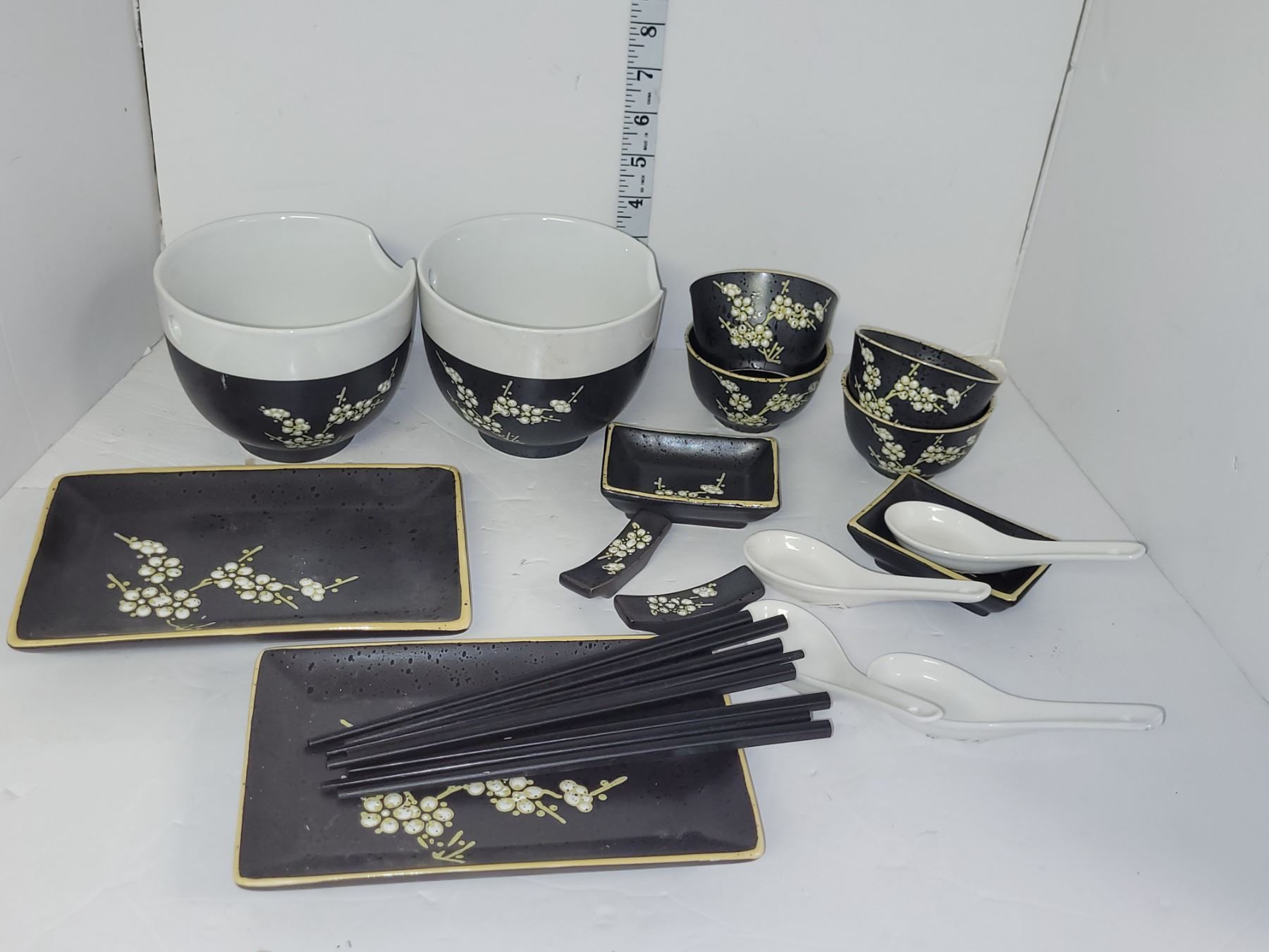 Gorgeous Asian Dishware Set - Wooden Chopsticks, Porcelain Soup Spoons- All Problem Free