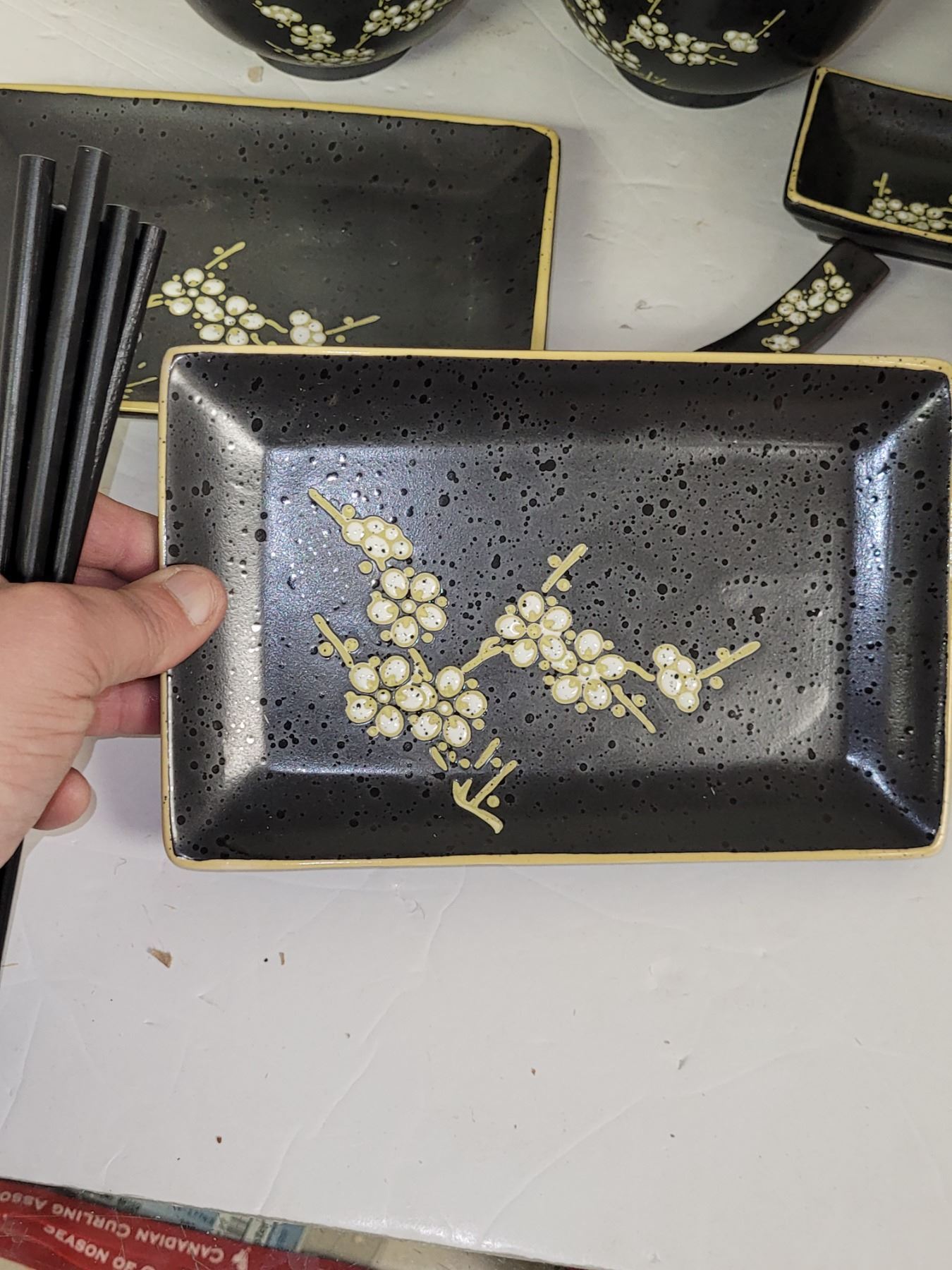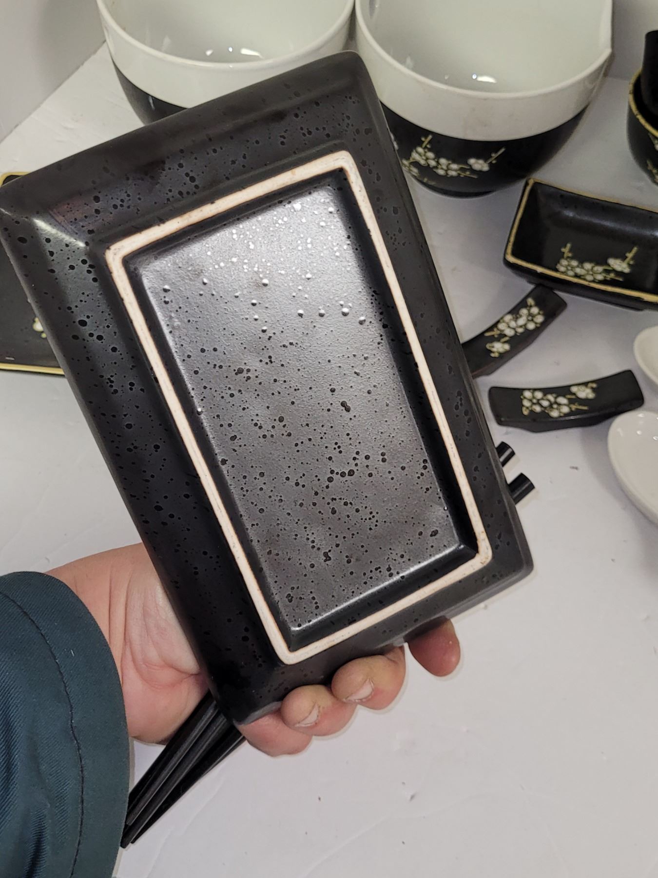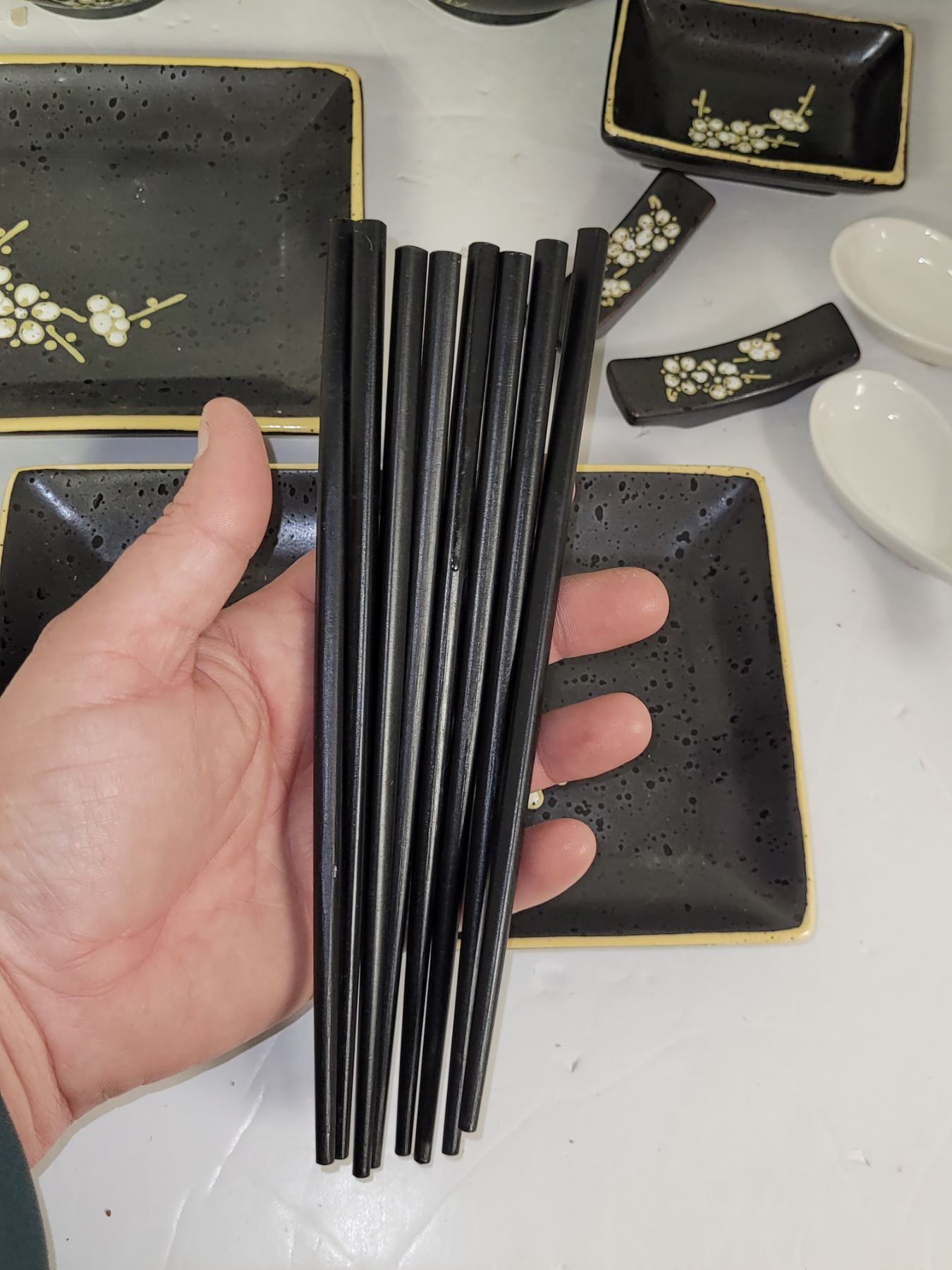 Gorgeous Asian Dishware Set - Wooden Chopsticks, Porcelain Soup Spoons- All Problem Free