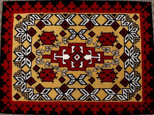 Gorgeous Brand New Anasazi Traders 100 Percent Wool Hand Knotted Rug, measures 5' x 6'8'', approx. .75'' thick, made by the Quichua Indians, each carpet is unique and one of a kind, hand dyed wool, it takes an entire month for 2 to 4 artists to complete one carpet