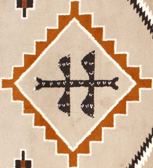 Gorgeous Brand New Anasazi Traders 100 Percent Wool Hand Knotted Rug, measures 5' x 9'7'', approx. .75'' thick, dragonfly motif, made by the Quichua Indians, each carpet is unique and one of a kind, hand dyed wool, it takes an entire month for 2 to 4 artists to complete one carpet