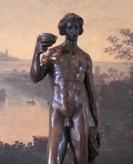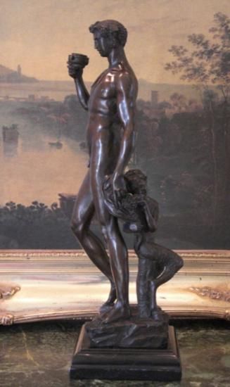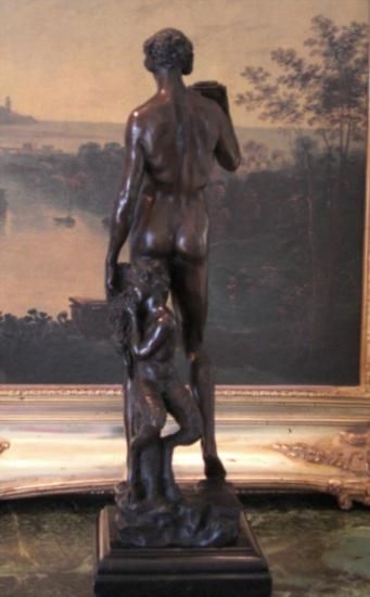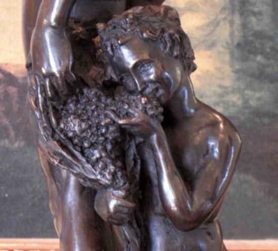 Bacchus Bronze Sculpture, After Encachepe, 19"H x 7 1/2"D x 7 1/2"W 18 lbs. This bronze sculpture was produced using the "Lost Wax" casting method. The"Lost Wax" Cast method is the most precise metal casting technique in existence, ensuring exquisite detail of the original host model which is usually sculpted in clay or wax. This "Lost Wax" casting method is an extremely labor intensive and expensive process, but the end results produce a Heirloom Quality Masterpiece!