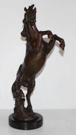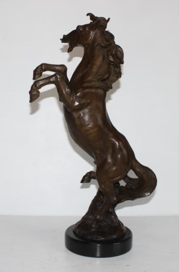 Rearing Stallion,Bronze Sculpture, After Debvt, 19"H x 9"W x 9"D16 lbs This bronze sculpture was produced using the "Lost Wax" casting method. The"Lost Wax" Cast method is the most precise metal casting technique in existence, ensuring exquisite detail of the original host model which is usually sculpted in clay or wax. This "Lost Wax" casting method is an extremely labor intensive and expensive process, but the end results produce a Heirloom Quality Masterpiece!