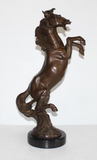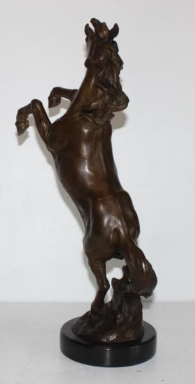 Rearing Stallion,Bronze Sculpture, After Debvt, 19"H x 9"W x 9"D16 lbs This bronze sculpture was produced using the "Lost Wax" casting method. The"Lost Wax" Cast method is the most precise metal casting technique in existence, ensuring exquisite detail of the original host model which is usually sculpted in clay or wax. This "Lost Wax" casting method is an extremely labor intensive and expensive process, but the end results produce a Heirloom Quality Masterpiece!