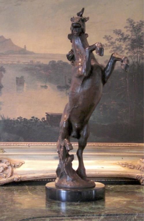 Rearing Stallion Bronze Sculpture After Debvt 19H x 9W x 9D16 lbs This bronze sculpture was produced using the "Lost Wax" casting method. The "Lost Wax" Cast method is the most precise metal casting technique in existence, ensuring exquisite detail of the original host model which is usually sculpted in clay or wax. This "Lost Wax" casting method is an extremely labor intensive and expensive process, but the end results produce a Heirloom Quality Masterpiece!