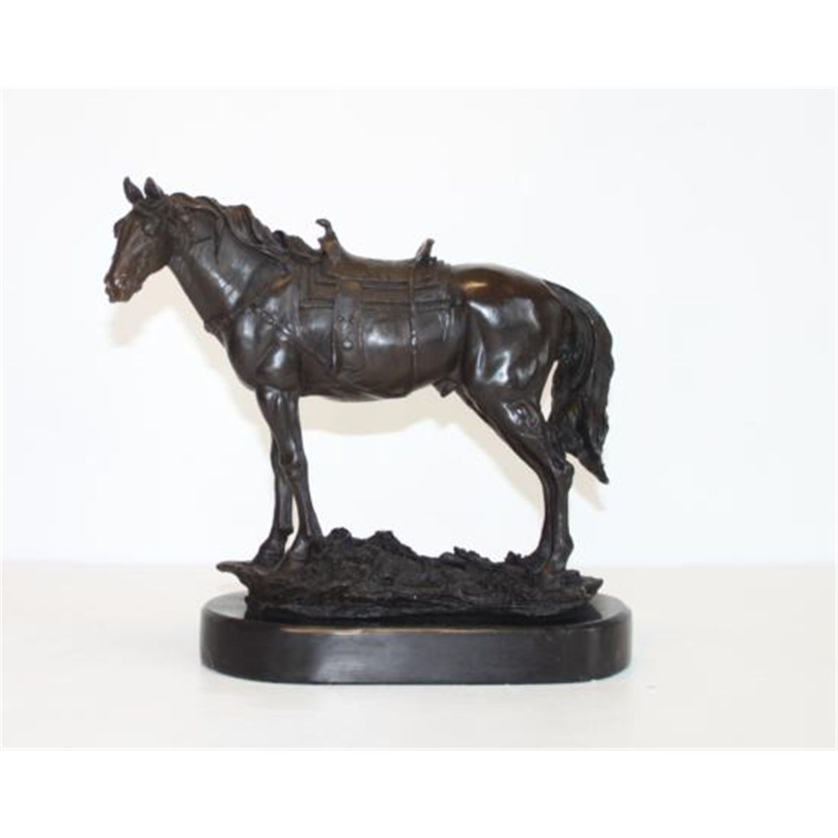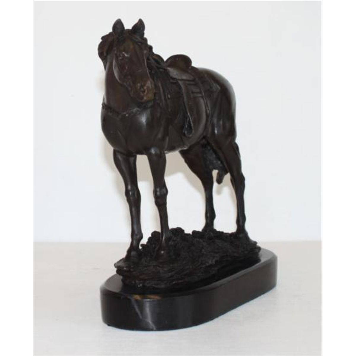 Saddled Horse Bronze Sculpture, After F. Paillet, 10" H x11"W x 5"D 14 lbs. This bronze sculpture was produced using the "Lost Wax" casting method. The"Lost Wax" Cast method is the most precise metal casting technique in existence, ensuring exquisite detail of the original host model which is usually sculpted in clay or wax. This "Lost Wax" casting method is an extremely labor intensive and expensive process, but the end results produce a Heirloom Quality Masterpiece!