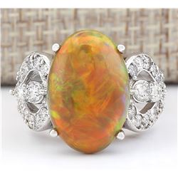6.63 CTW Natural Opal And Diamond Ring In 14k White Gold