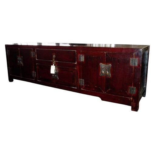 The antique furniture is a piece of exquisite chinese Qing dynasty's sideboard made of wood gathered from Shanxi province in China.A wonderful piece for a room that can hold it.At the beginning of the Qing Dynasty, furniture followed Ming patterns and styles.Qing Furniture showed its own uniqueness with the absorption of western art. It was larger in size with grandeur and pageantry.Engraving was a popular and important means of furniture decoration. The subjects range from auspicious character patterns, to geometric patterns and scenes in nature with animals, mountains and waters, flowers and grass. Color painting, especially gold painting, was widely used.Commercial symbols emerged, such as patterns concerning money and fortune.To later Qing furniture has less engraving ,instead ,inlays of stone, porcelain and bone, which catch the eye more easily than exquisite engraving, are used to tell of the luxurious lifestyle of the owner. In addition, color and gold painting become the vogue depicting the preference for gaudiness by the wealthy.