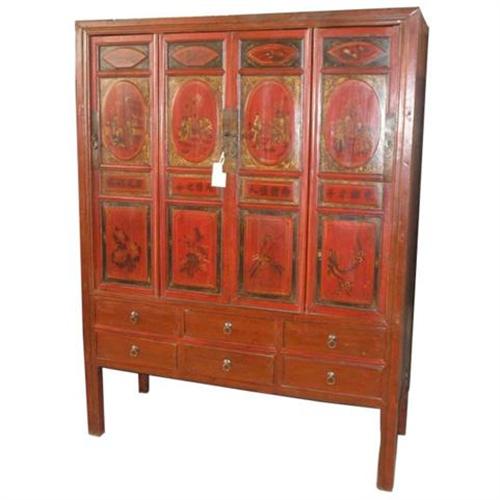 The antique furniture is a piece of exquisite chinese Qing dynasty's wardrobe made of wood gathered from Hebei province in China.A wonderful piece for a room that can hold it.At the beginning of the Qing Dynasty, furniture followed Ming patterns and styles.Qing Furniture showed its own uniqueness with the absorption of western art. It was larger in size with grandeur and pageantry.Engraving was a popular and important means of furniture decoration. The subjects range from auspicious character patterns, to geometric patterns and scenes in nature with animals, mountains and waters, flowers and grass. Color painting, especially gold painting, was widely used.Commercial symbols emerged, such as patterns concerning money and fortune.To later Qing furniture has less engraving ,instead ,inlays of stone, porcelain and bone, which catch the eye more easily than exquisite engraving, are used to tell of the luxurious lifestyle of the owner. In addition, color and gold painting become the vogue depicting the preference for gaudiness by the wealthy.