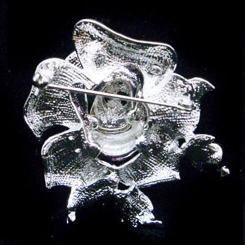 Gorgeous Fuchsia Swarovski Crystal Rose Flower Pin Brooch, measures approx 2 in length by 2 width mwf2048