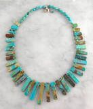 Turquoise & Genuine Sterling Silver Green Stick Necklace Choker Southwest .925 Jewelry