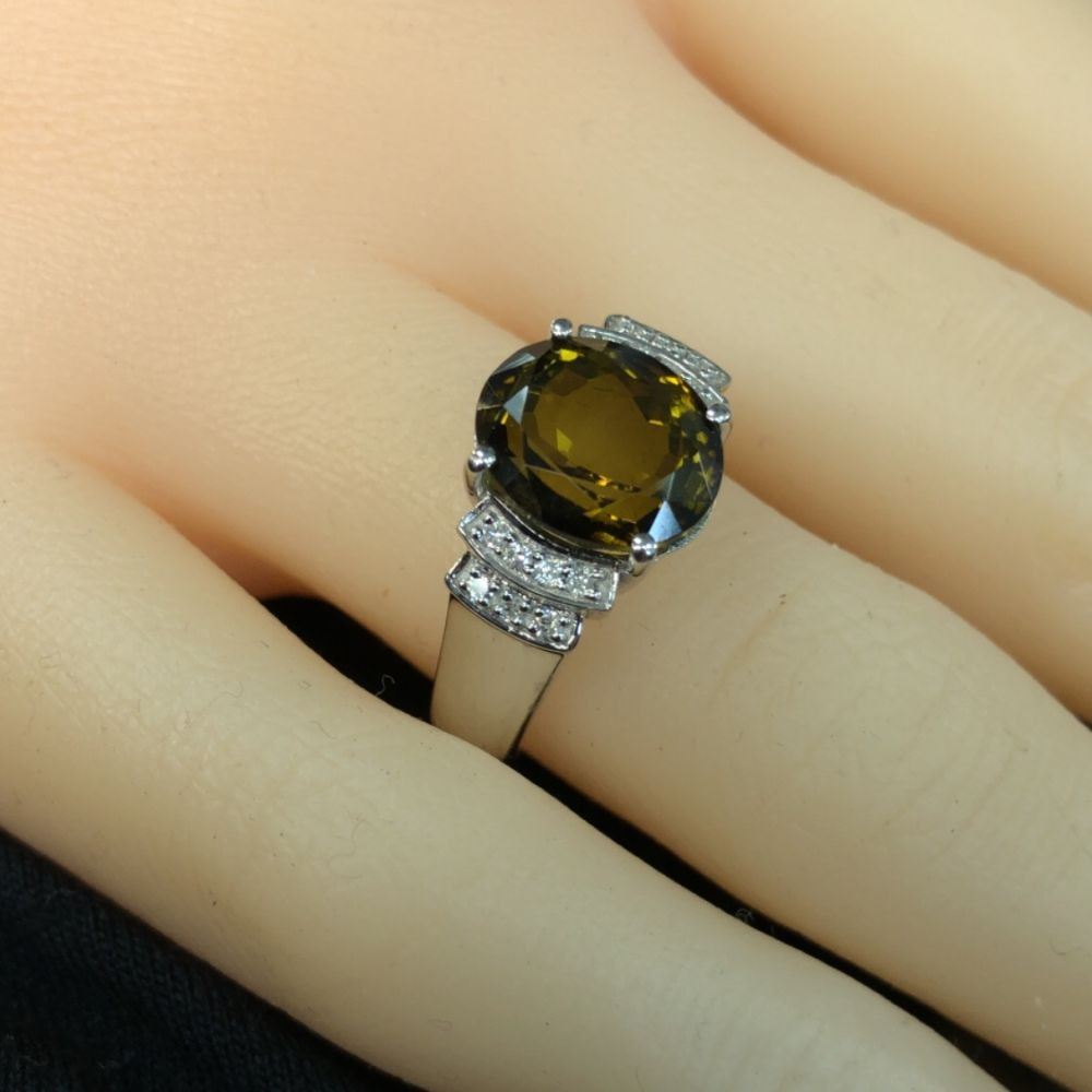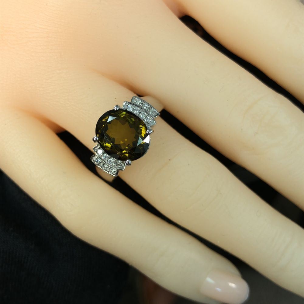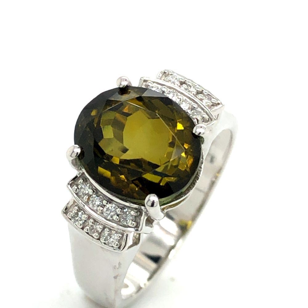 Gorgeous Green Tourmaline and Diamond Ring
