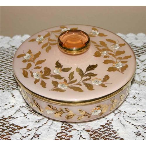 <tr><td>Title:Gorgeous Hand Painted Pink Glass Powder Box</td></tr>