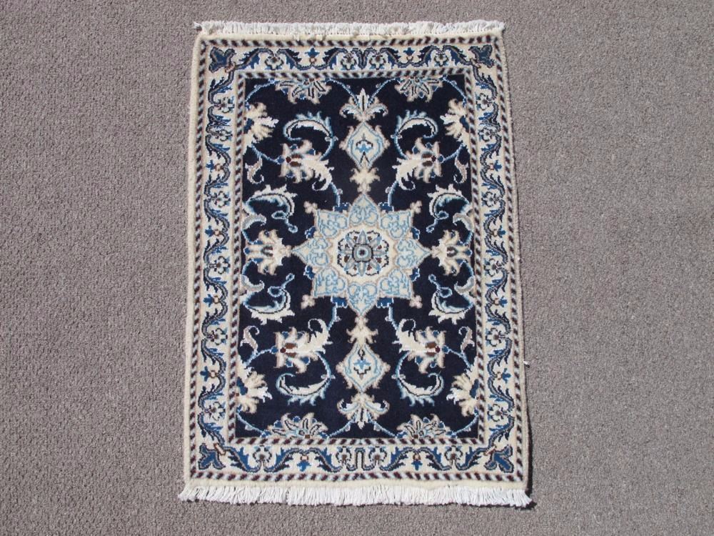 Rug: Handmade Wool and Part Silk Persian Nain; Material: Made of the finest baby lamb's wool and part pure silk pile, all natural vegetable dye ; Size: 3.0 x 1.10 feet; Foundation: Cotton; Design: Persian Nain; Origin: Iran