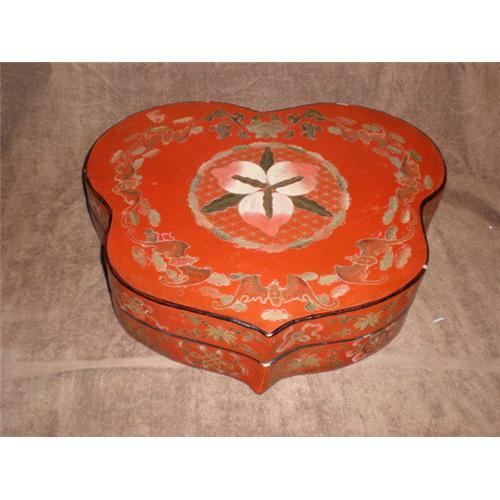 Gorgeous Large Poly Chrome Lacquer Box. This lacquer box up for auction is a real beauty. It is a butterfly like design with various symbolic Chinese designs. Designs that include bats, a peach like flower on top and other designs along the side. It is done in the Chinese lacquer red with other vibrant colors. This lacquer box is between 50-75 years old. It does have a few spots of damage, all of which have been pictured. With that said it still retains is original beauty and elegance. This box measures 17" by 19.5" by 5". Excellent addition to any collection. Perfect gift for that Chinese art collector. Check this one out! WERE DO YOU FIND THEM AT THIS SIZE. VERY UNIQUE AND CLASSY.