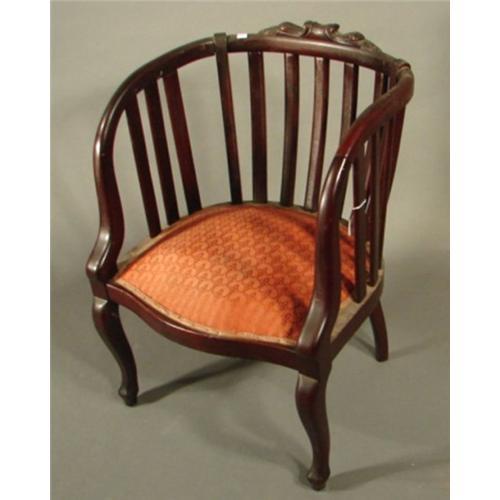 Gorgeous Mahogany Barrel Type Chair with Carved Crest.