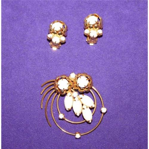 <tr><td>Title:Gorgeous Milkglass Rhinestone Brooch & Earrings</td></tr>