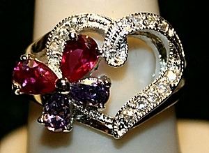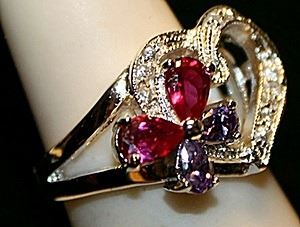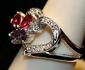 Gorgeous Multi Colored Sterling Silver Ring. (513L) Lab Rubies, White Topaz and Amethyst twt approx. 4cts.