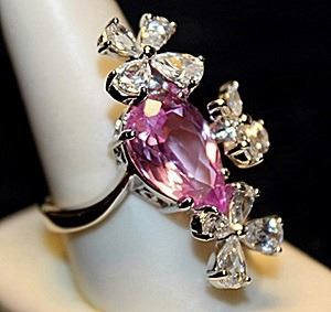 Gorgeous Pink Lab Sapphires & White Topaz SS Ring. (546L) Gemstones twt approx. 20cts. Sterling Silver.