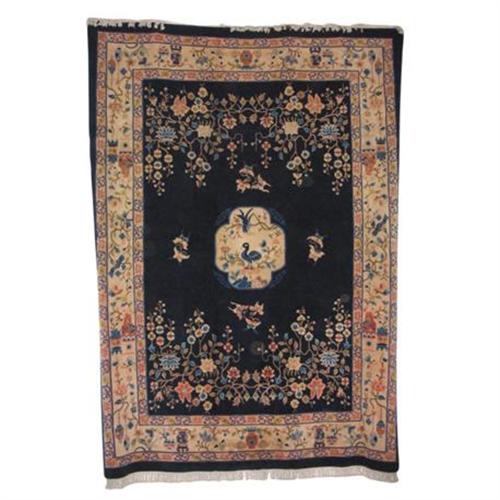The collection we introduce to you is a exquisite pure wool rug with beautiful dragon pattern handmade in Tibet.Rugs and carpets are basic necessities in the Tibetan daily life.The high quality hand spun,vegetable dyed look,and the primitive but highly stylized patterns greatly appealed to westerners.Typically made for use as mats to sit on or for meditation,door and window covers,horse saddles,bed covers and pillar wrapping,the traditional Tibetan weaving generally reflect traditional Tibetan culture and religion.However,Chinese designs were also dominant as seen in the display of dragons,phoenix,clouds, floral and lotus images.