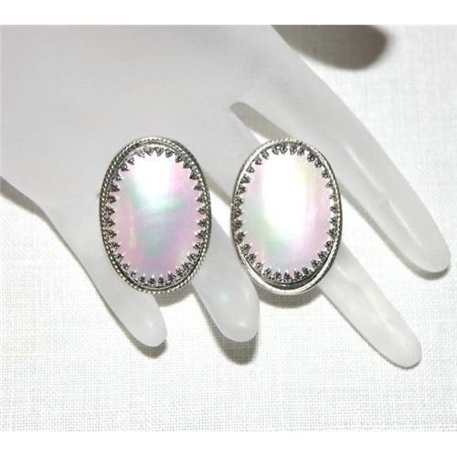 Signed with the Patent #156452 and Whiting Davis Co these gorgeous 1930s vintage Earrings are quite large at 1 ¼ inches long by 1 inch wide. Set with a wonderful genuine MOP Cabochon that has been bezel set onto a heavy Rhodium plated setting. Attaching to the ear with a clip-back closure.