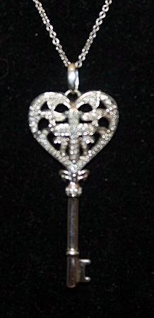 Gorgeous Silver Heart-Cross-Key Shape Necklace with Diamonds (92I) twt approx. .50ct VS1 Color I.