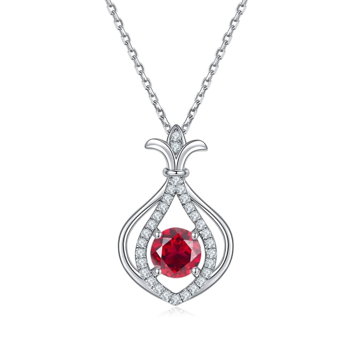 Ladies Beautiful Lab Created Burma Ruby Pendant. This fine lab ruby is a near flawless 1ct brilliant round cut. Mounted in stamped .925 solid sterling silver. It is complimented by 14 Kt White Gold Overlay, which gives the pendant its high polish and shine. It is also tarnish resistant. The total weight is approx. 1.7 grams including an 18" silver chain.