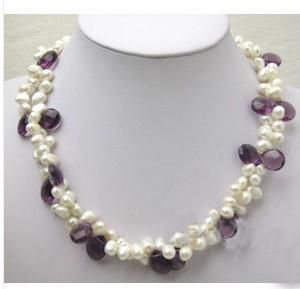 Gorgeous two row white Freshwater pearl and Amethyst Necklace 18~ MWF1024