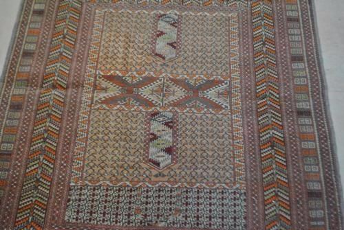Lustrous unique colors fine Sarband. 100% wool with cotton foundtion, natural dye. Variety of very rare collors. Influenced by Persian designs, this Saraband Rug from eastern oriental Rug center brings a stunning oriental, geometric print to your home. Saraband is a village of western Iran. Saraband Rugs are a form of Persian oriental Rugs. This art belongs to the south east of Arak (which is the central west area of iran) and the south of Malayer. This hand-made "state of the art" Rug, is usually used as a floor covering and the design consists of small leave's forms in diagonal rows. Size 4 feet 11 inches X 5 feet 7 inches.