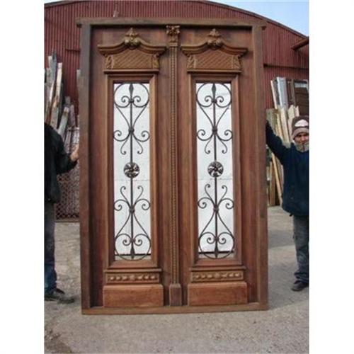 Double door made in cedar, with wrought iron inserts. This door is full restore, coming with frame and hinges ( pre-hung), and no finish, ready to ad what you like.
