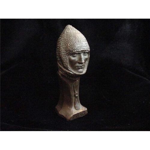 Very nice solid bronze hooded aviator bust with propeller. This bronze is 4 1/4" tall, 1 3/8" wide, and has a 1 1/4" base. "Aviatore" etched on front. Back is marked "Gorham Co. Founders QBY G." Q was the code for foundry works and these pieces were usually sold in Gorham retail stores in New York from 1890-1920. Excellent condition.