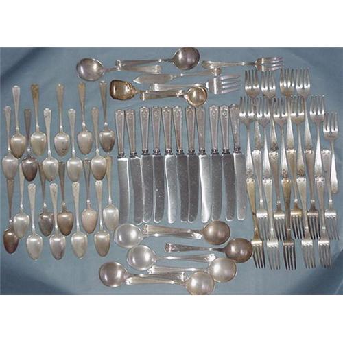 <table width="100%" border="0" cellspacing="0" cellpadding="4"><tr><td><em> </em></td></tr><tr> <td width="100%"> Gorham Silversmiths 1913 sterling silver pattern "Etruscan" 65 pieces including: