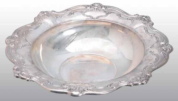 Description Weighs 26.8 troy ounces. Bowl has a shaped edge and border with molded scrolls around a plain center. Condition (Very Good). Size 12 - 5/8" Dia.